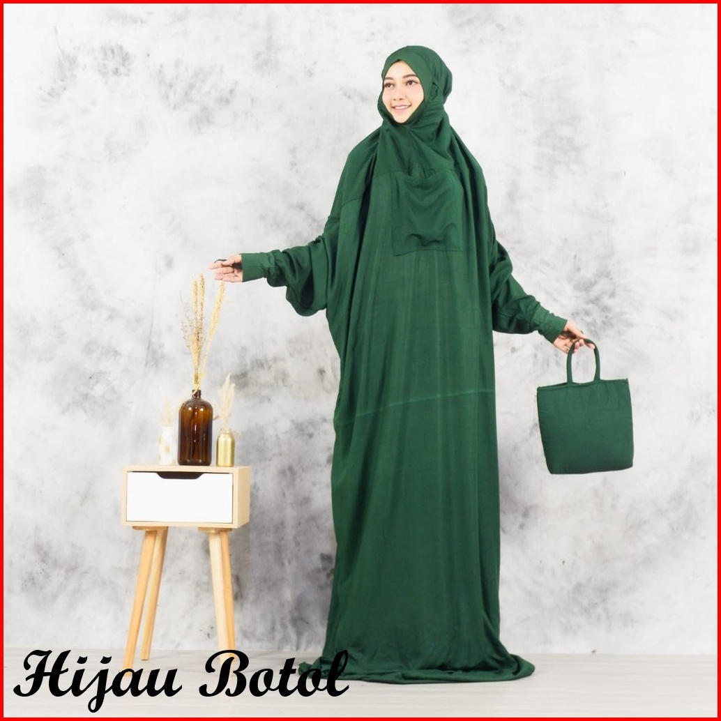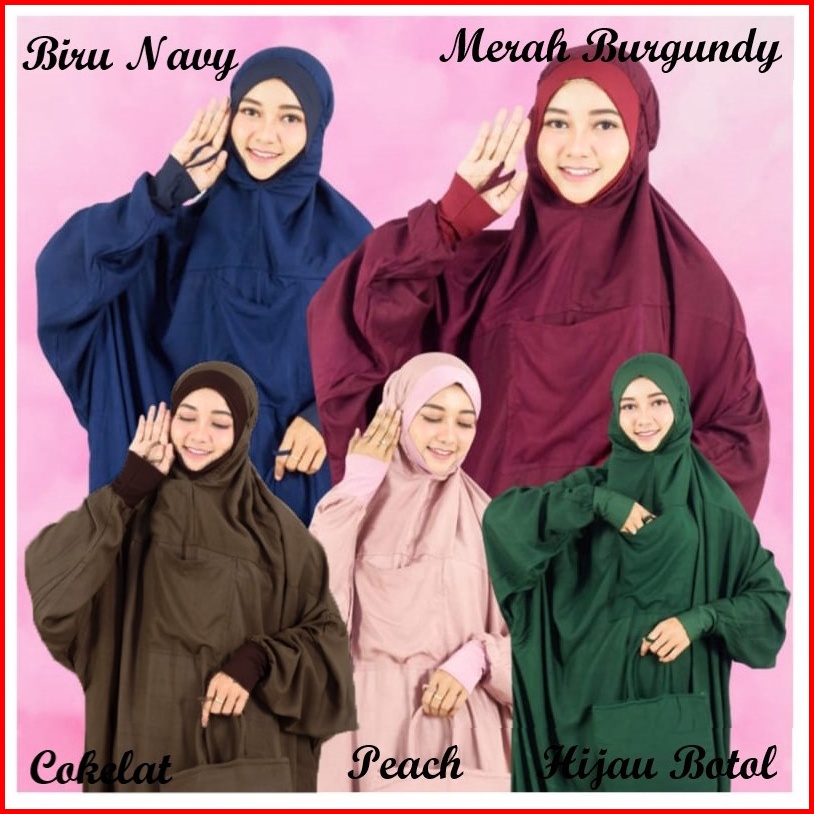 Mukena Hadramaut Malaysia 03 Manset Terusan Polosan 5 Warna Mukenah Jumbo Rayon Handprint High Quality - Dewasa