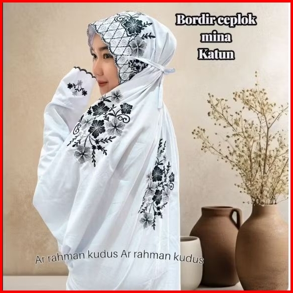 Mukena Lajuran Terusan Motif Bunga Ceplok Mina