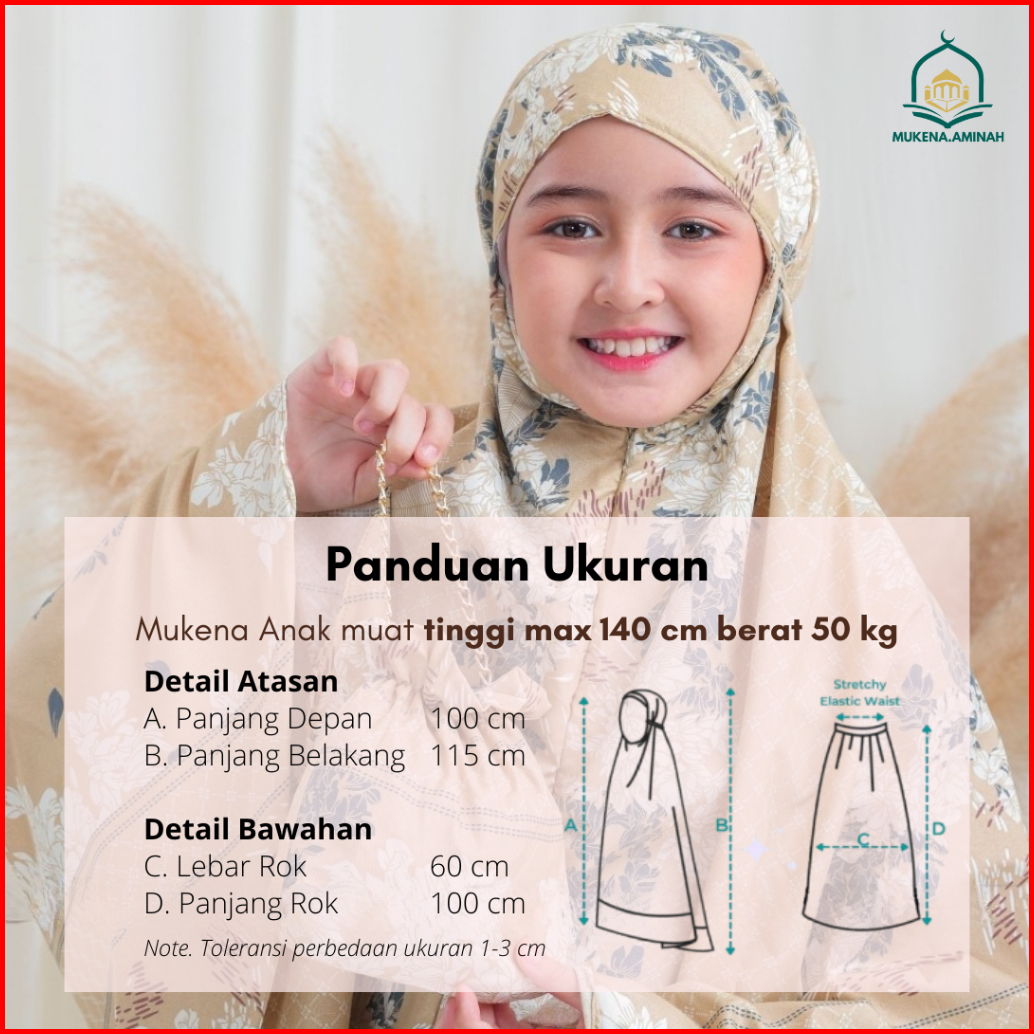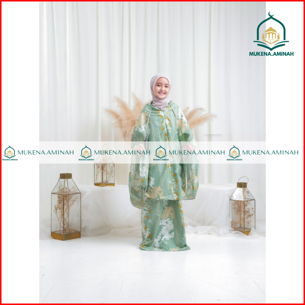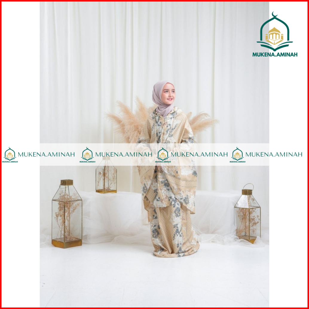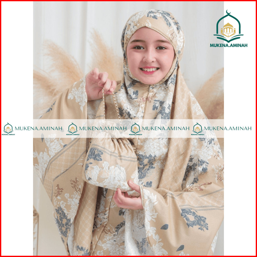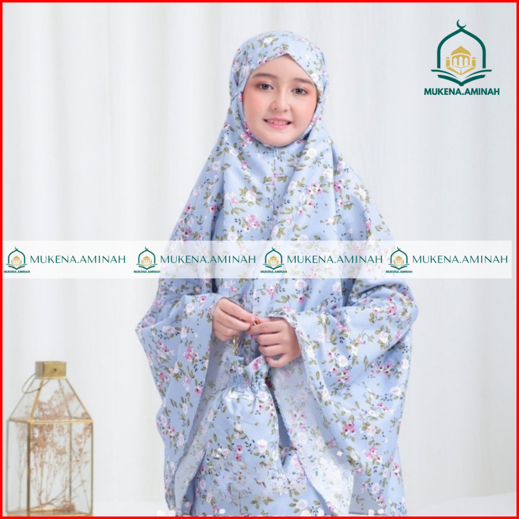 Mukena.aminah Mukena Anak Tanggung Azura Hasya 2in1 Resleting Travel Katun Motif