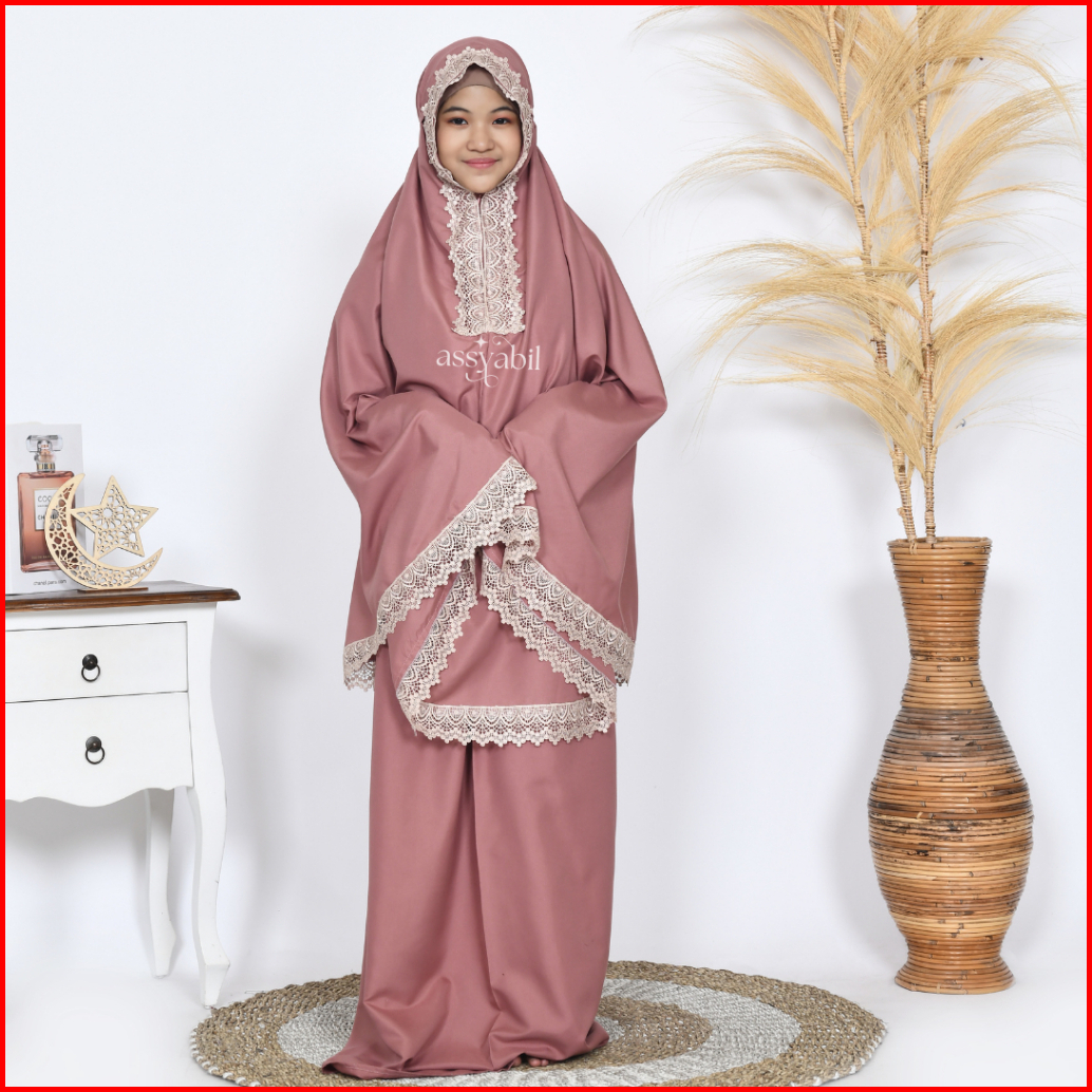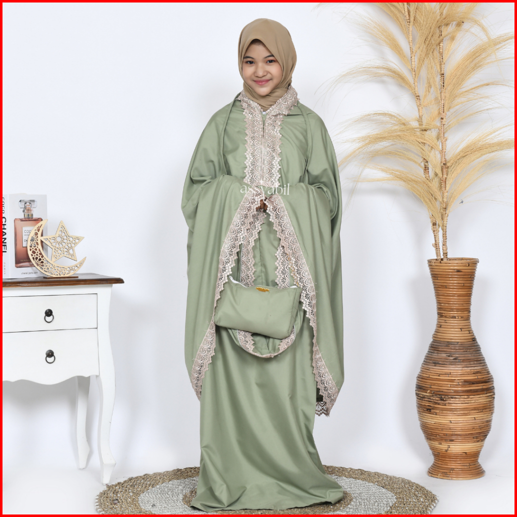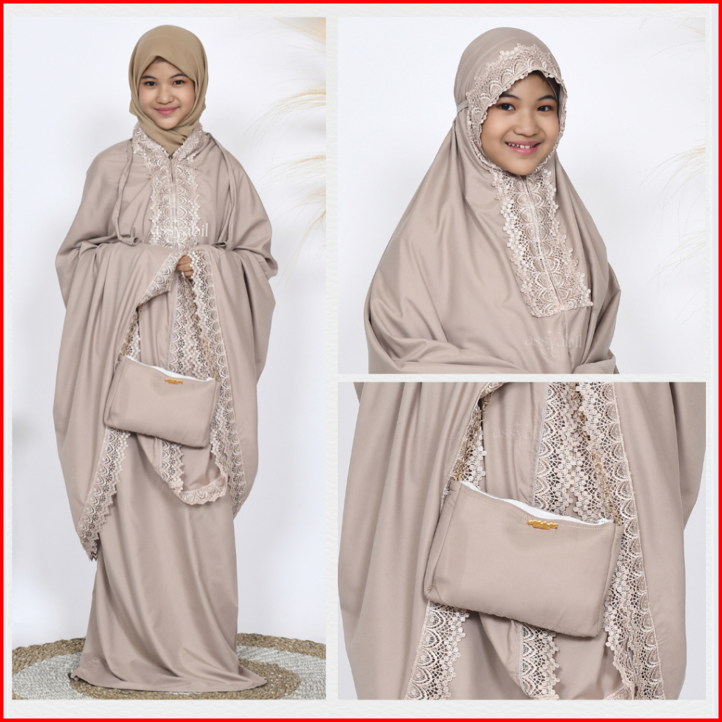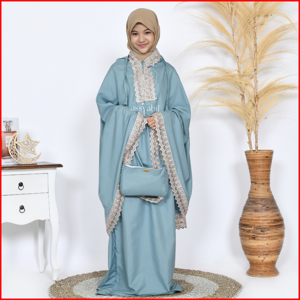 Asyabill - Mukena Anak Zamora 2in1 Resleting Bawah Dagu Dengan Bahan Katun Premium Usia 7 8 9 10 11 12 13 .thn