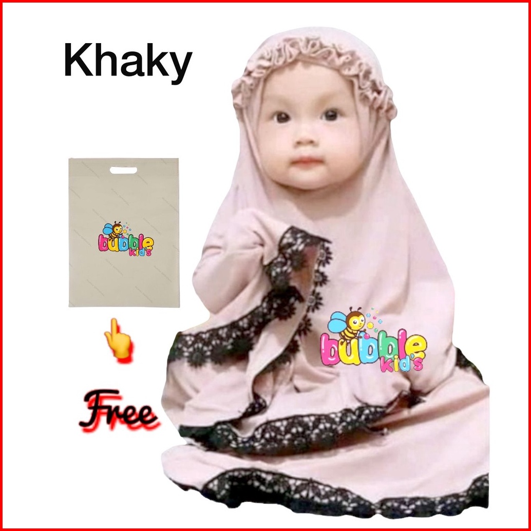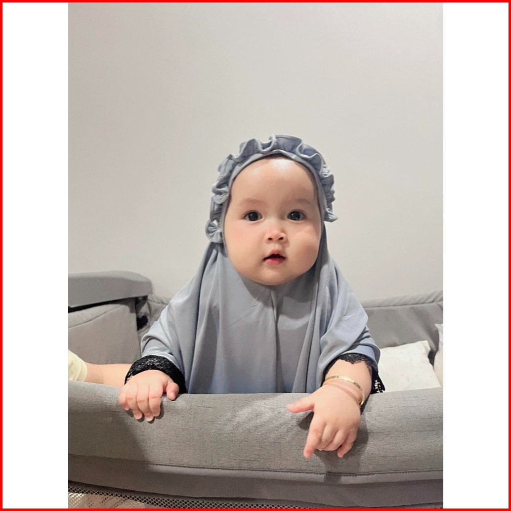 Egsus Mukena Anak Bayi Ruffle 0 - 3 Tahun Katun Spandek Jersey Adem Elastis Renda Brukat Mocca
