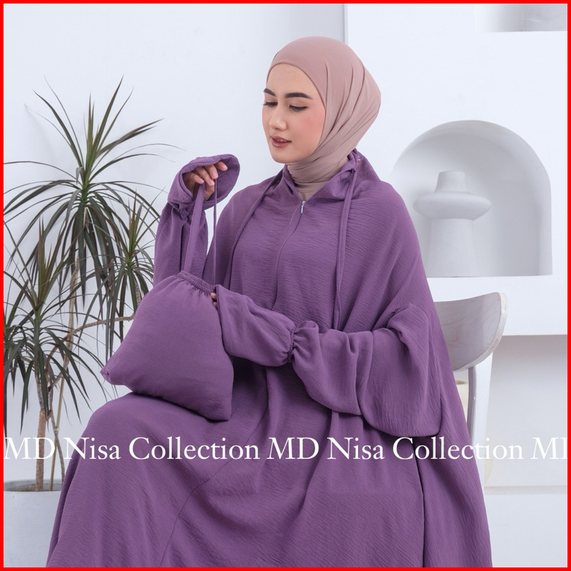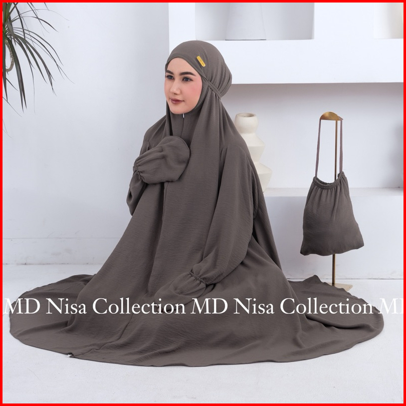 Md Nisa - Mukena Dewasa Jumbo Crinkle Airflow Khadijah 2in1 Setelan Berlengan Atas Bawah Penutup Dagu Syar I Malaysia