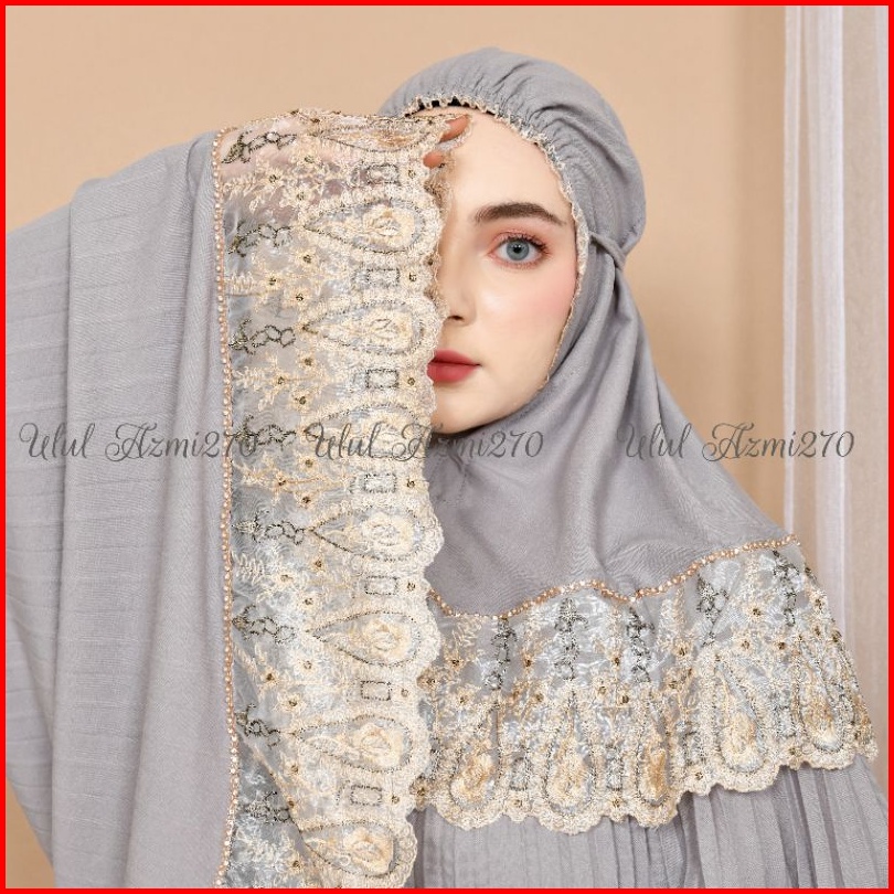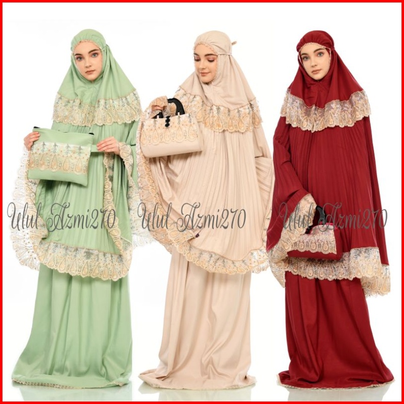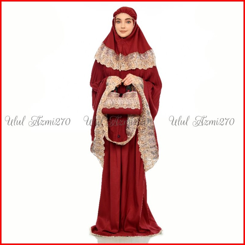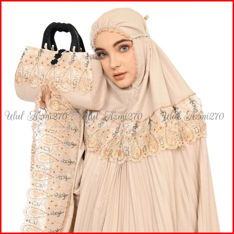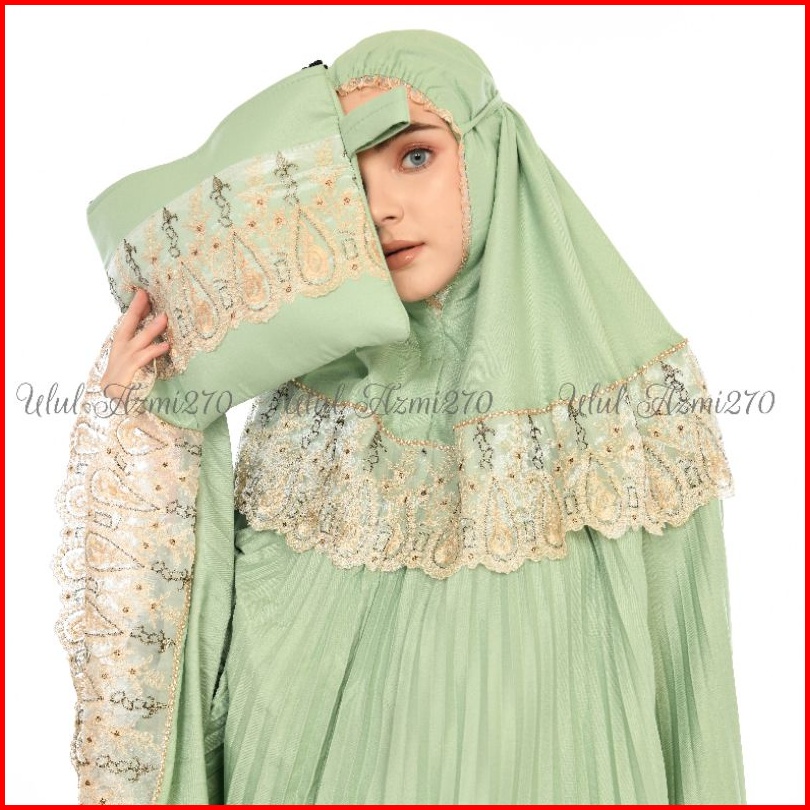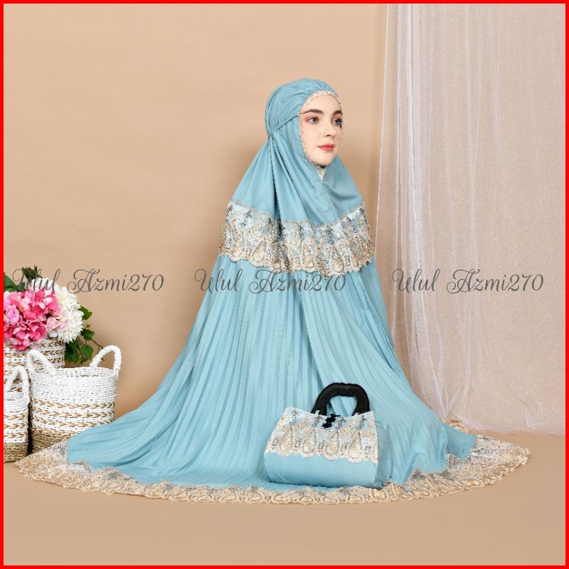 Ulul Azmi Mukena Traveling Dewasa Plisket Jumbo Mikro Premium Renda Zipper Mewah