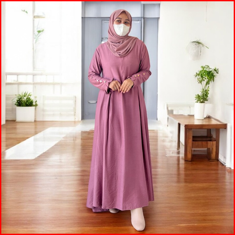 Wilona Maxi Dress Simpel Tapi Elegant Variasi Kancing Tangan Depan Resleting Baju Gamis Lebaran 2025