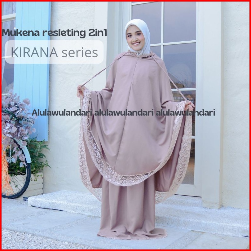 Mukena Resleting 2 In 1 Dewasa Jumbo Katun Renda Tile Glossy Mewah Kirana Series