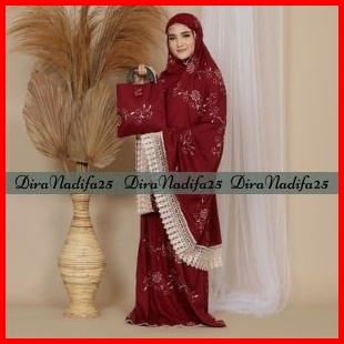 Diranadifa25 - Mukena Gracella Dewasa Full Bordir Mewah Bunga Teratai Rayon Premium Jumbo Renda Free Tas Cantik