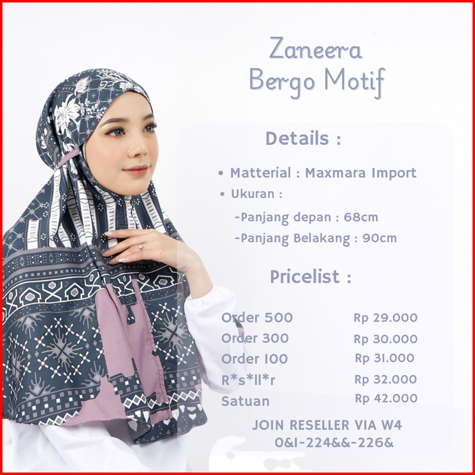 By.arsy Zaneera Hijab Bergo Motif Maxmara Premium Daily Tanpa Label