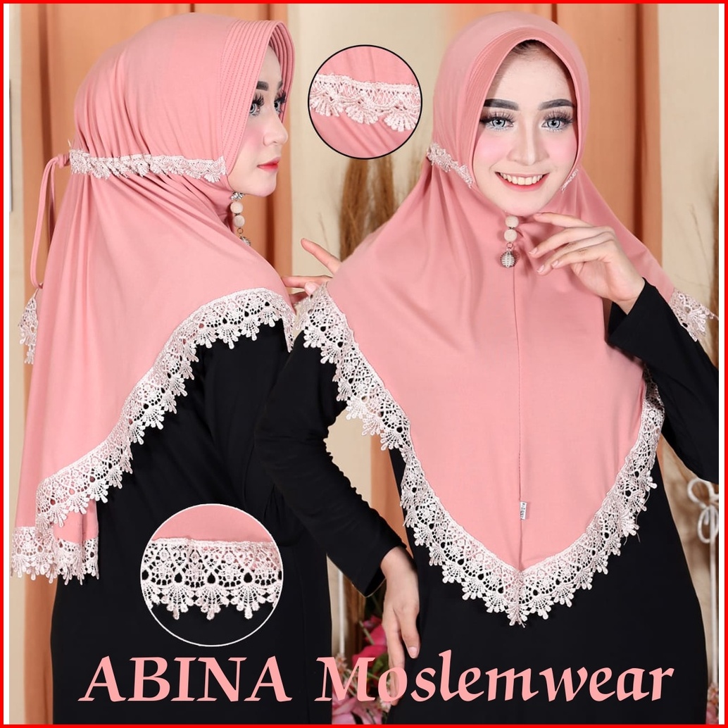 Hijab Bergo Kerudung Khimar Jersey Serut Renda By Abina Moslemwear