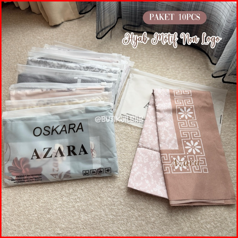 Paket Usaha Hijab 10pcs Voal Motif Non Logo Free Pouch