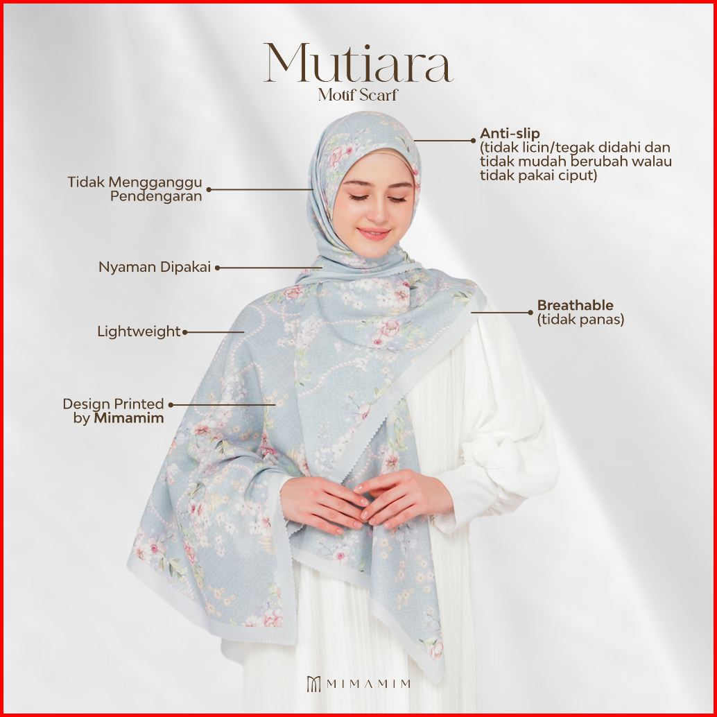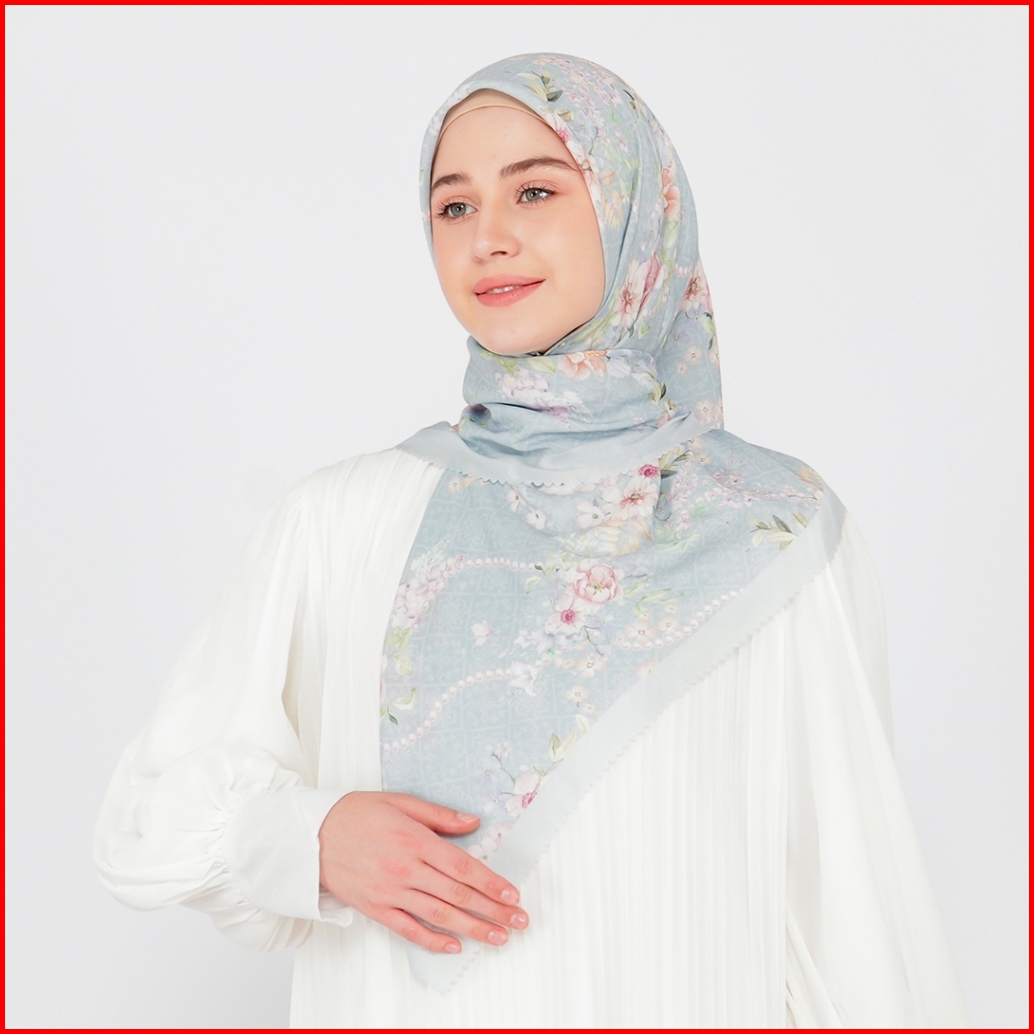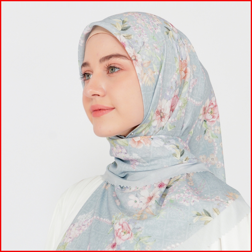 Mimamim Hijab - Jilbab Mutiara Segiempat Motif Scarf Voal Premium Kerudung Square Lasercut