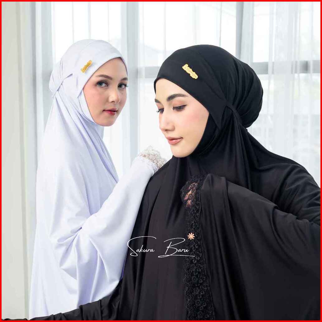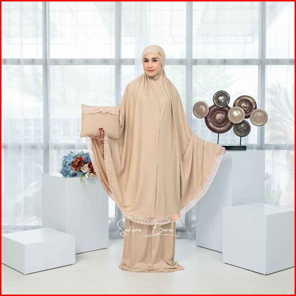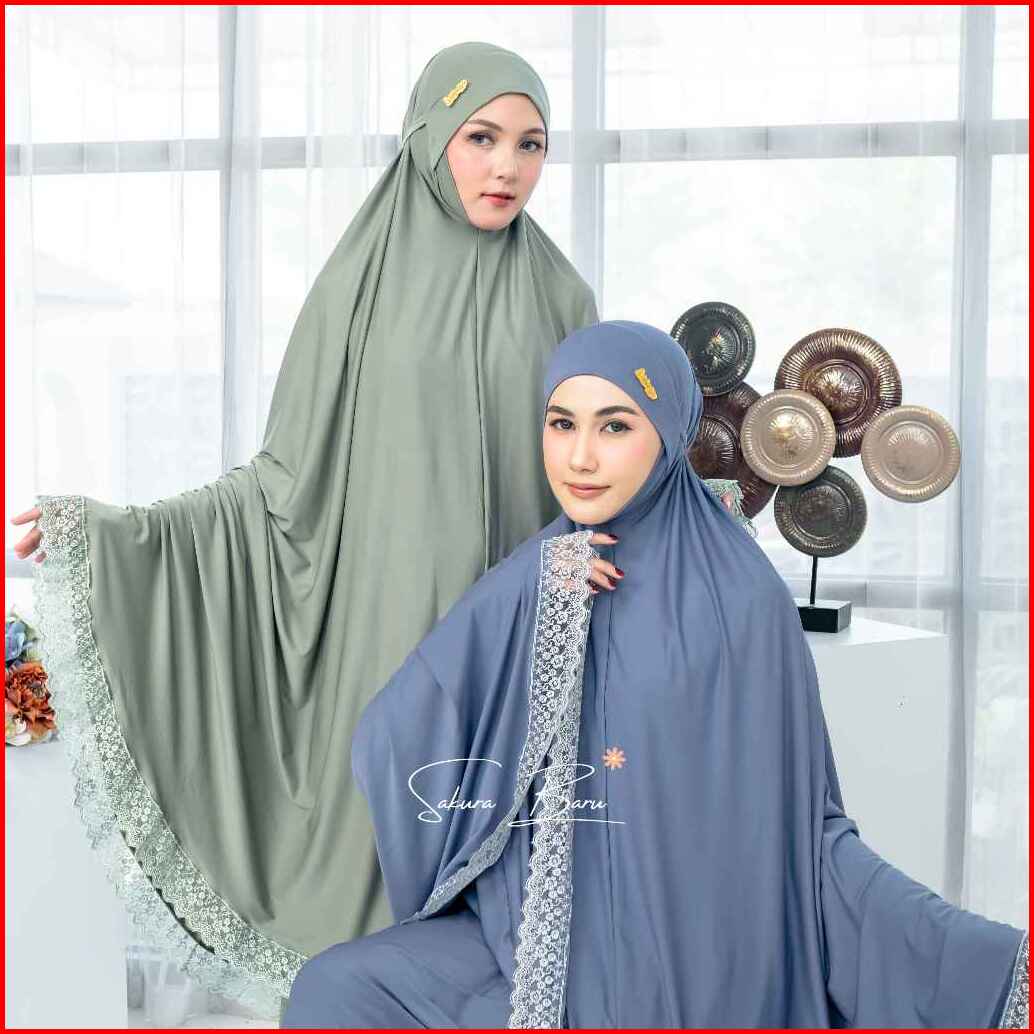 Sakura Baru - Mukena Aqiqah Dewasa Penutup Dagu Renda Jarsey Renda Jumbo Atasan Panjang Muslim