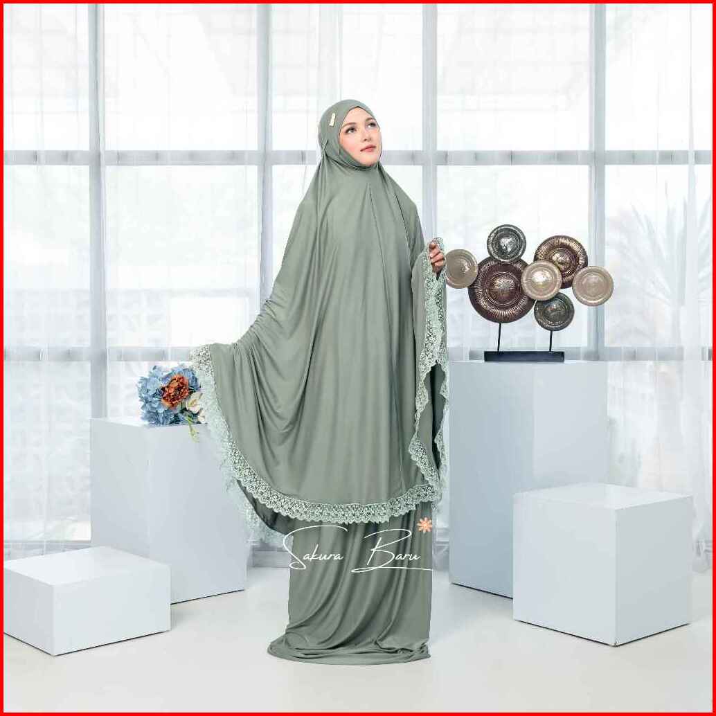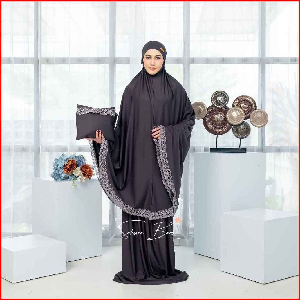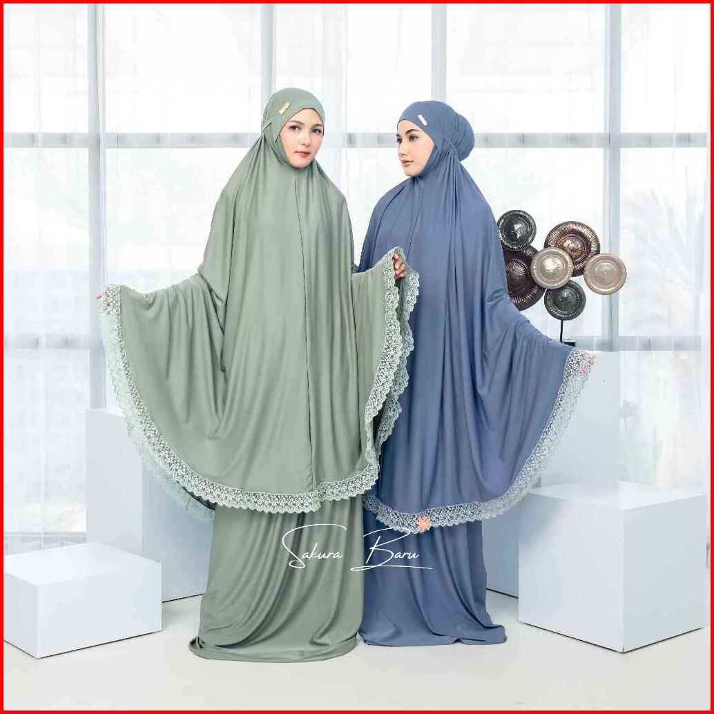 Sakura Baru - Mukena Aqiqah Dewasa Penutup Dagu Renda Jarsey Renda Jumbo Atasan Panjang Muslim