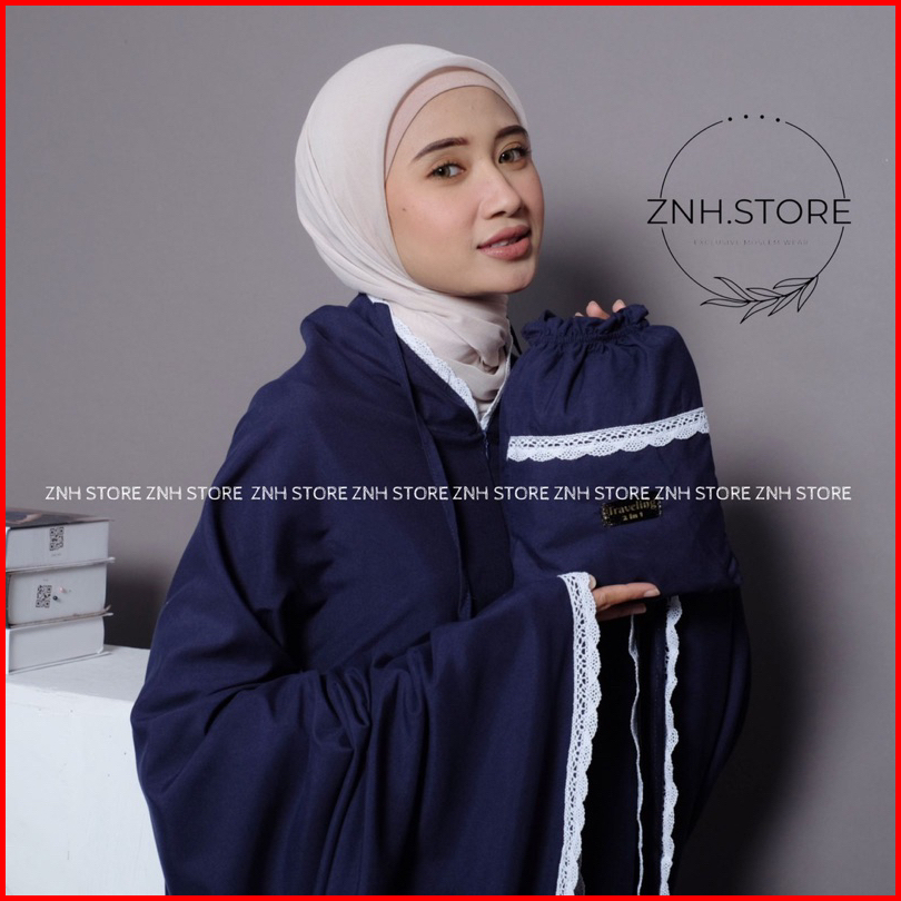 Mukena Traveling Dewasa 2in1 Katun Premium Tas Serut