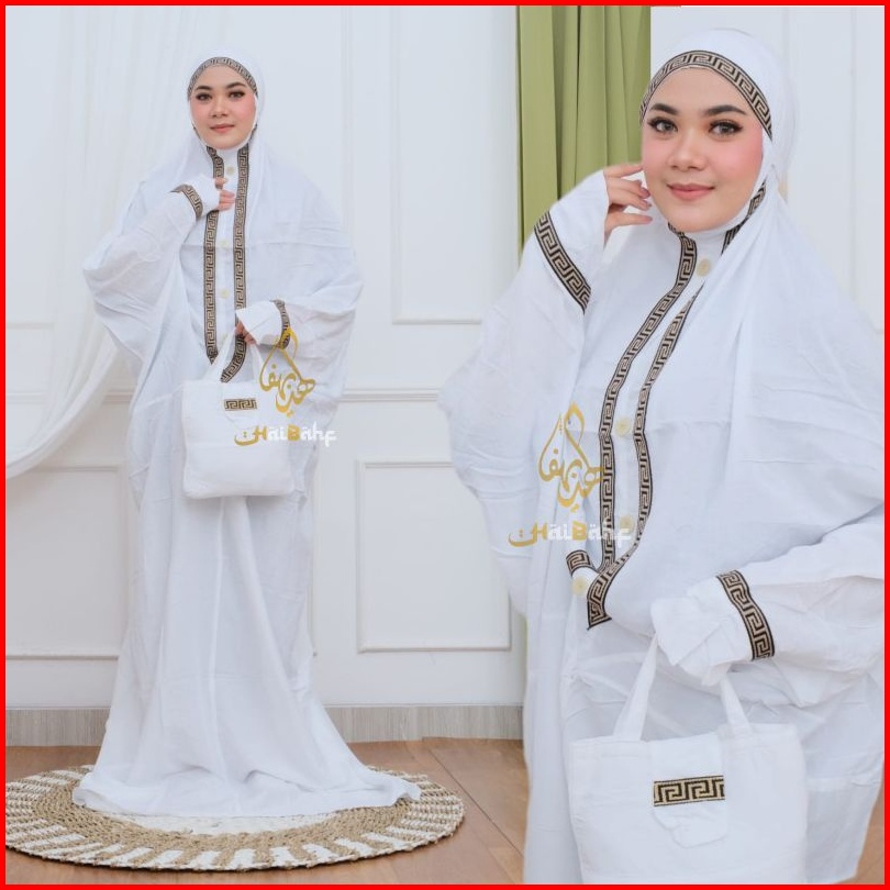 Mukena Terusan Dewasa Jumbo Polos Putih Renda
