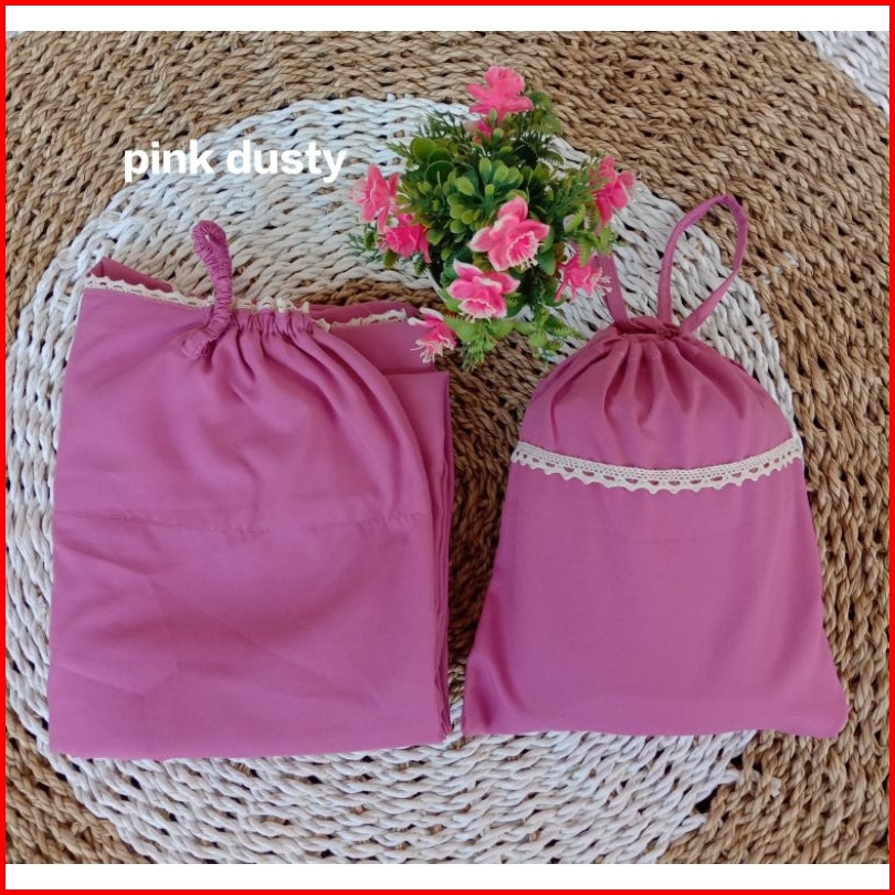 Mukena Terusan Travelling Renda Rajut Plus Tas Serut