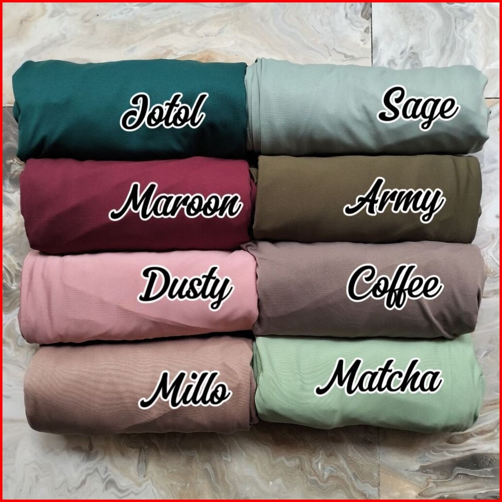 Abu Tua, Hitam, navy, mocca, taro, Sage, Hijau Tua, coksu, marun, tiramisu, dusty, coffee, putih bersih, millo, cappucino, Latte, BW, Lime, Denim, Abu muda