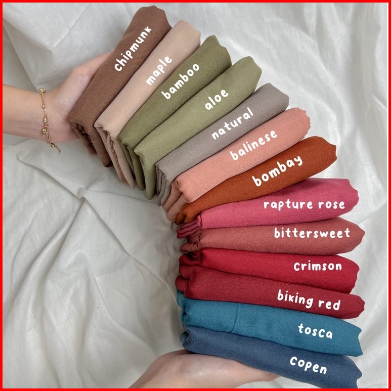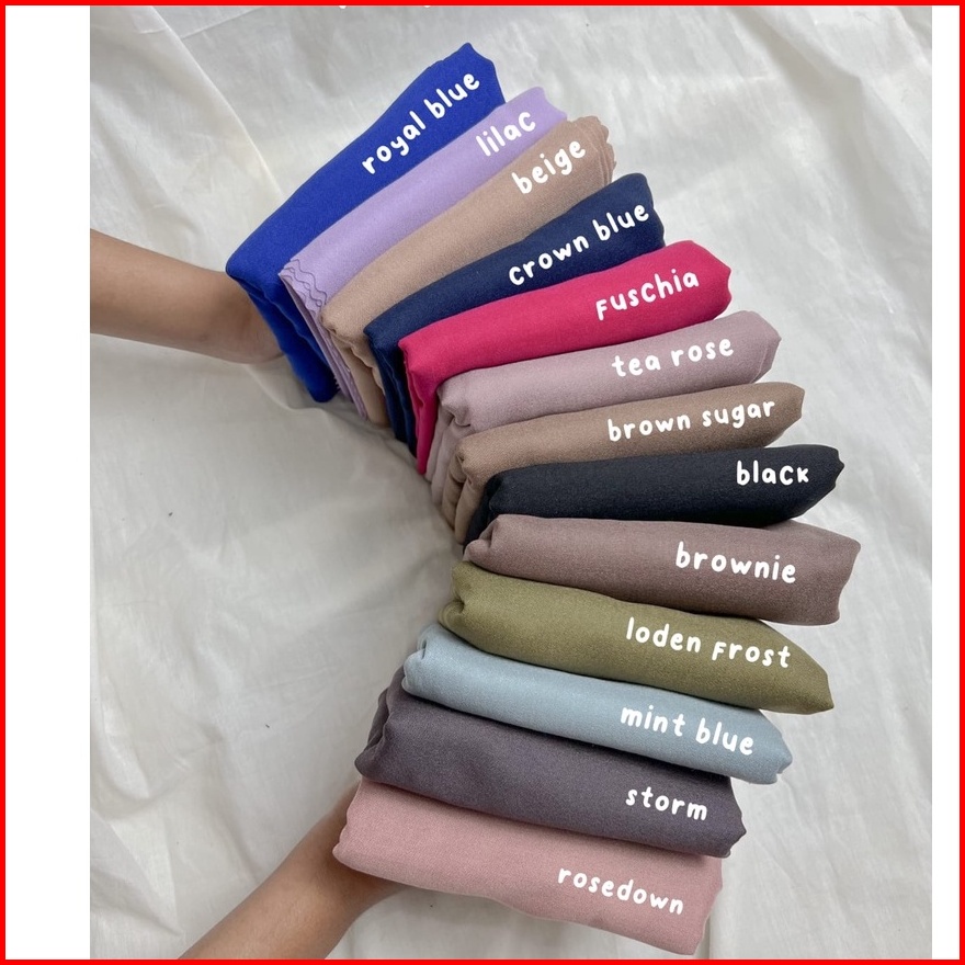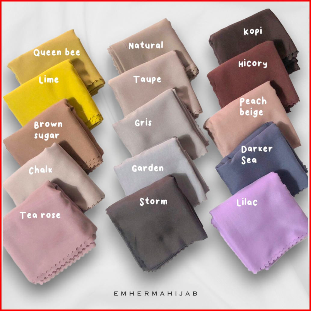 TOSCA, NATURAL, TAUPE, CHALK, MAPLE, ANGORA, TEA ROSE, ROYAL BLUE, ROSY BROWN, SPARROW, LIGHT DENIM, MILKY BLUE, CREAM BANANA, NAVY, COFFEE, PEACH ORANGE, FROZEN BLUE, LAVENDER, LILAC, LIME, OPTIC WHITE / PUTIH, PUTIH BW, SAGE, BLACK, AMBER YELLOW, GOLDEN, PERSIAN VIOLET, CHIPMUNK, STONE, TAFFY, SKINTONE, QUEEN BEE, ORCHIDE ICE, CRYSTAL PEARL, WARM BEIGE, CHEESECAKE, FAIR BEIGE, MINT GLOSS, PINK SALEM, CROWN BLUE, SPACE BLUE, Khaky, FRIDGE