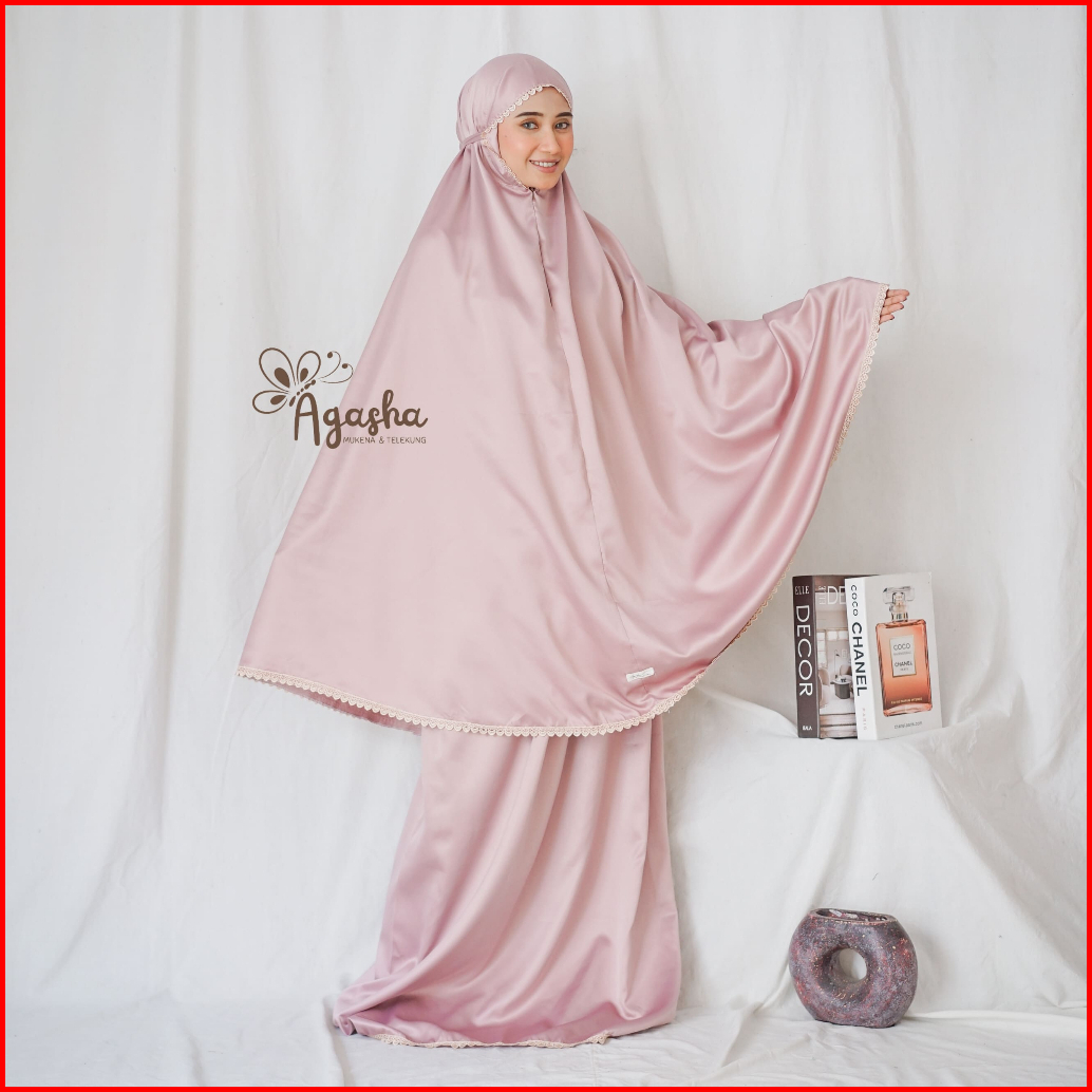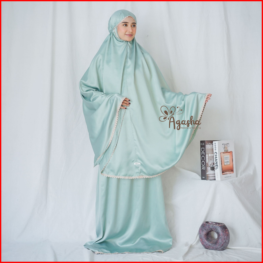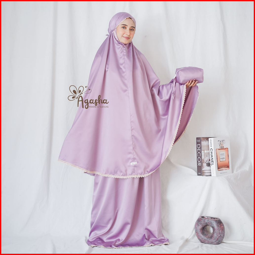 Mukena Azalia Resleting 2in1 Satin Velvet Renda Polos Simple