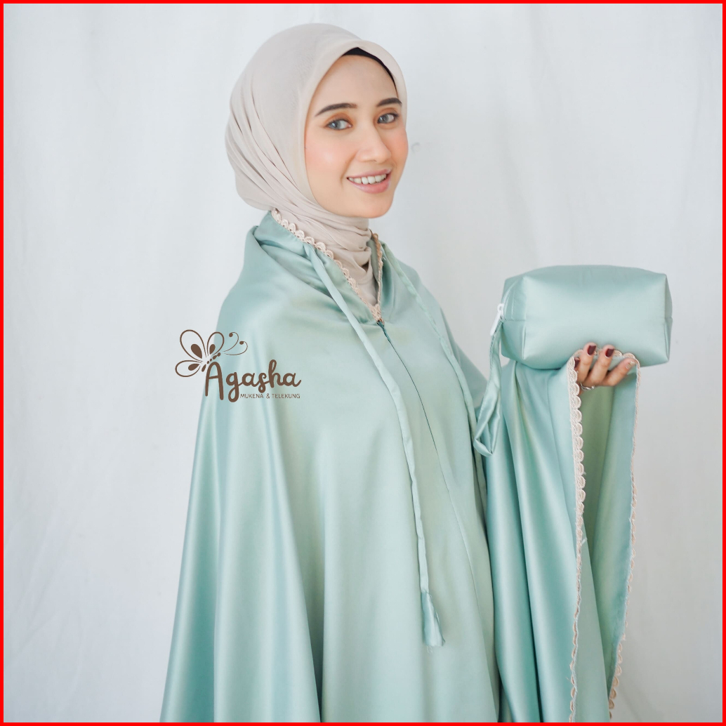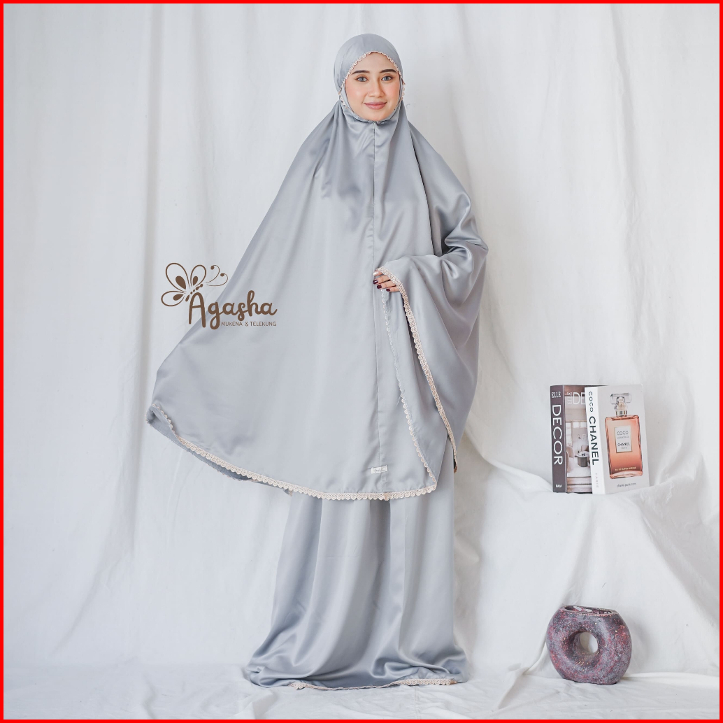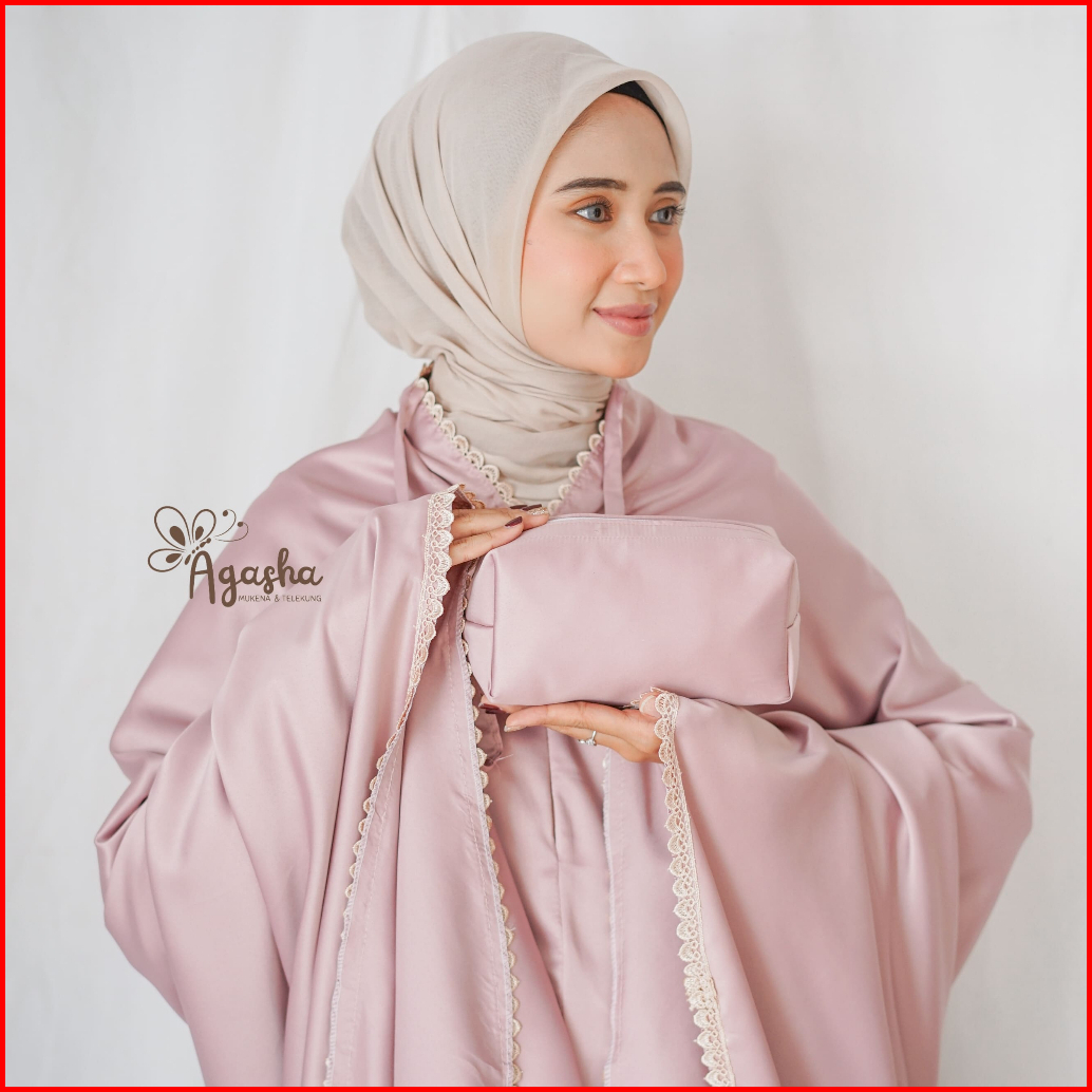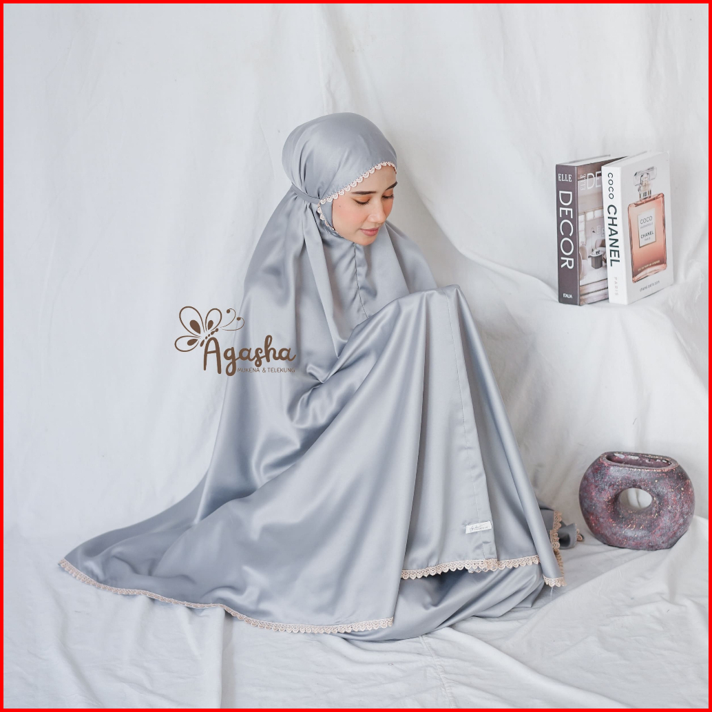 Mukena Azalia Resleting 2in1 Satin Velvet Renda Polos Simple