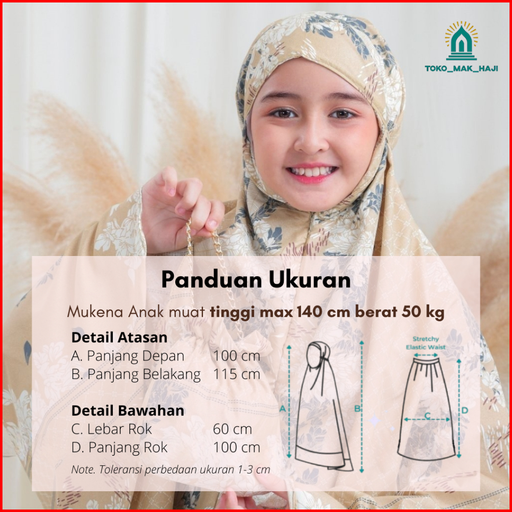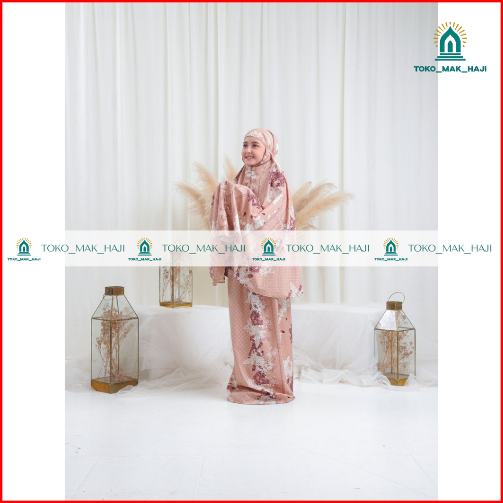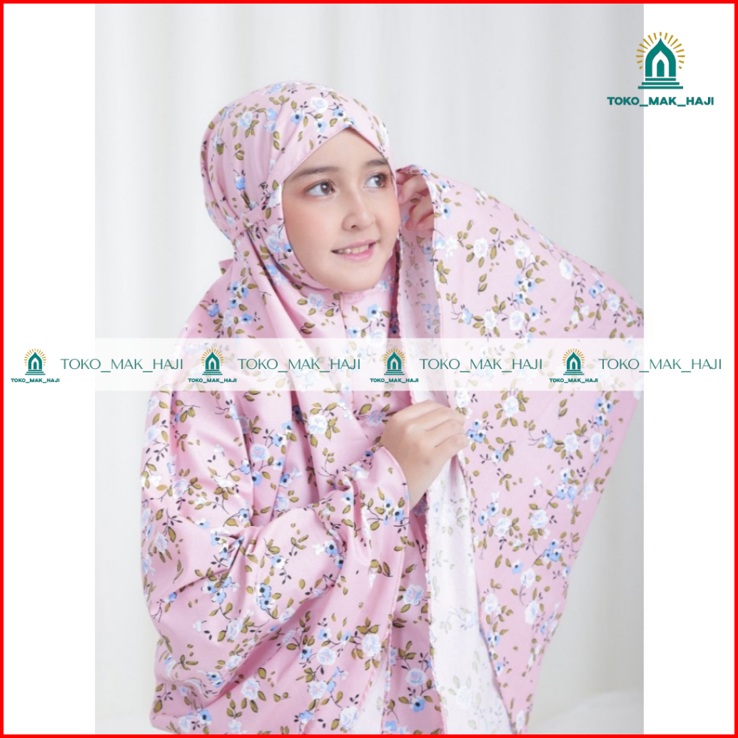 Toko Mak Haji Mukena Anak Tanggung Azura Hasya 2in1 Resleting Travel Katun Motif