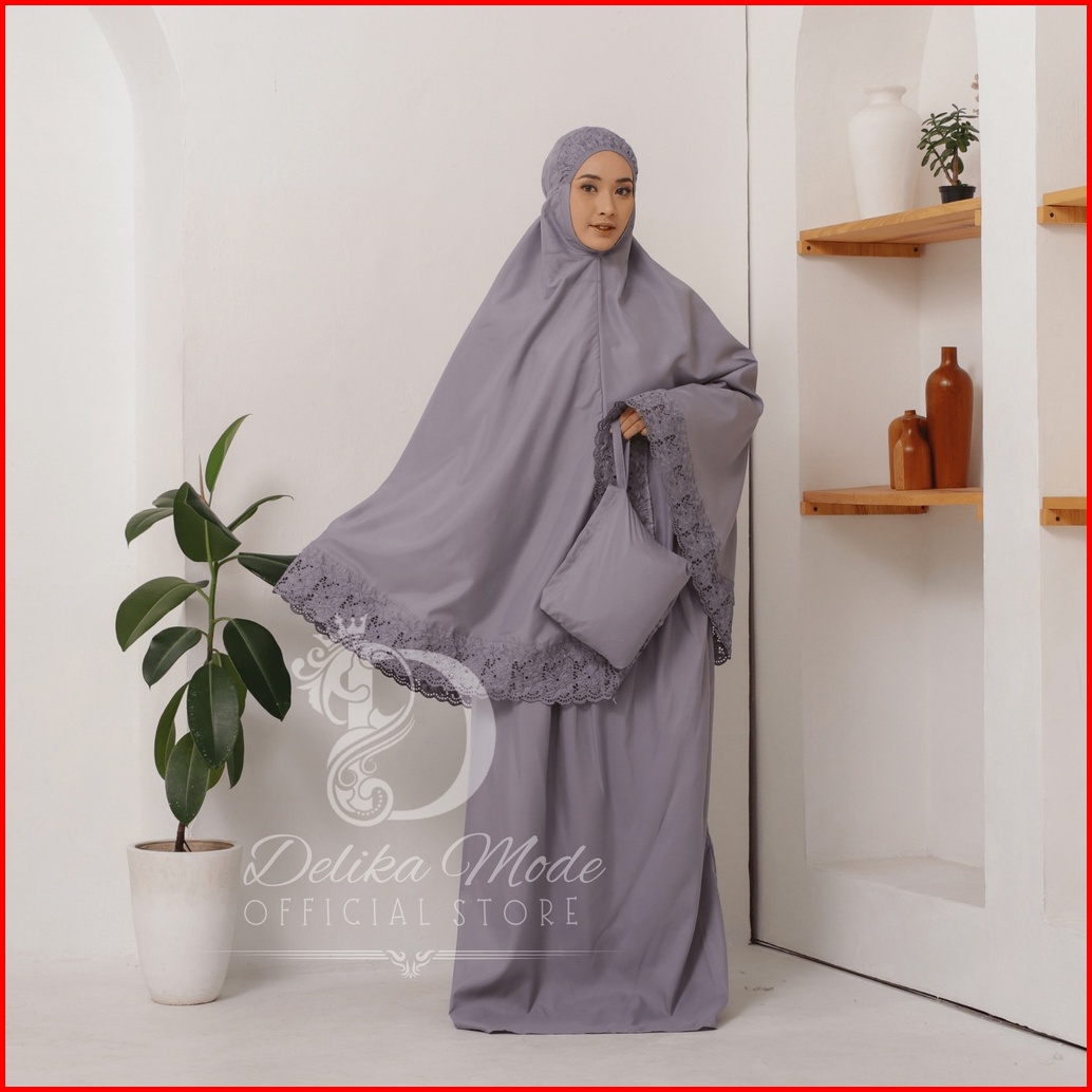 Delikamode - Mukena Siti Khadijah Katun Premium Dewasa Full Bordir Free Tas Khadija Pasteleena Jumbo Original