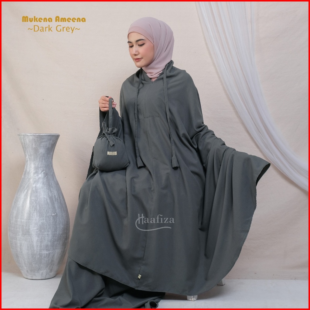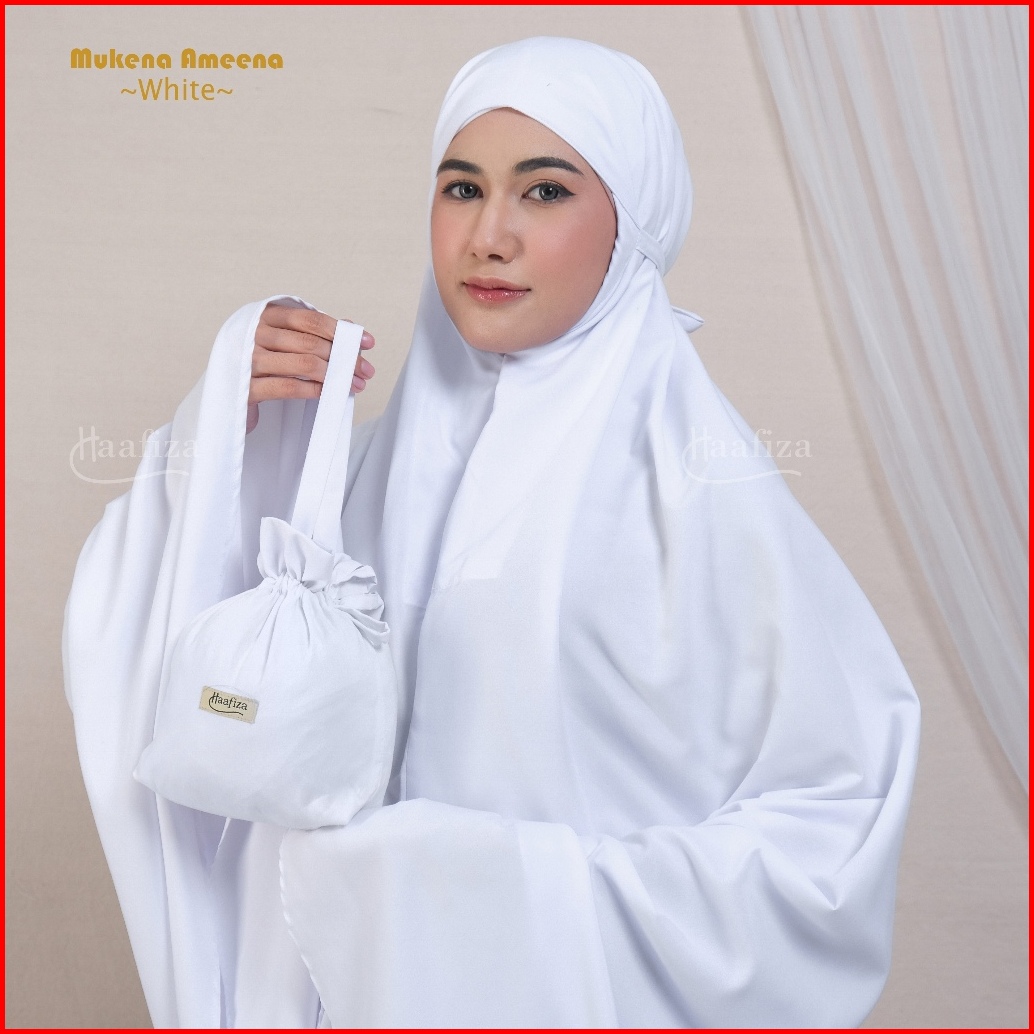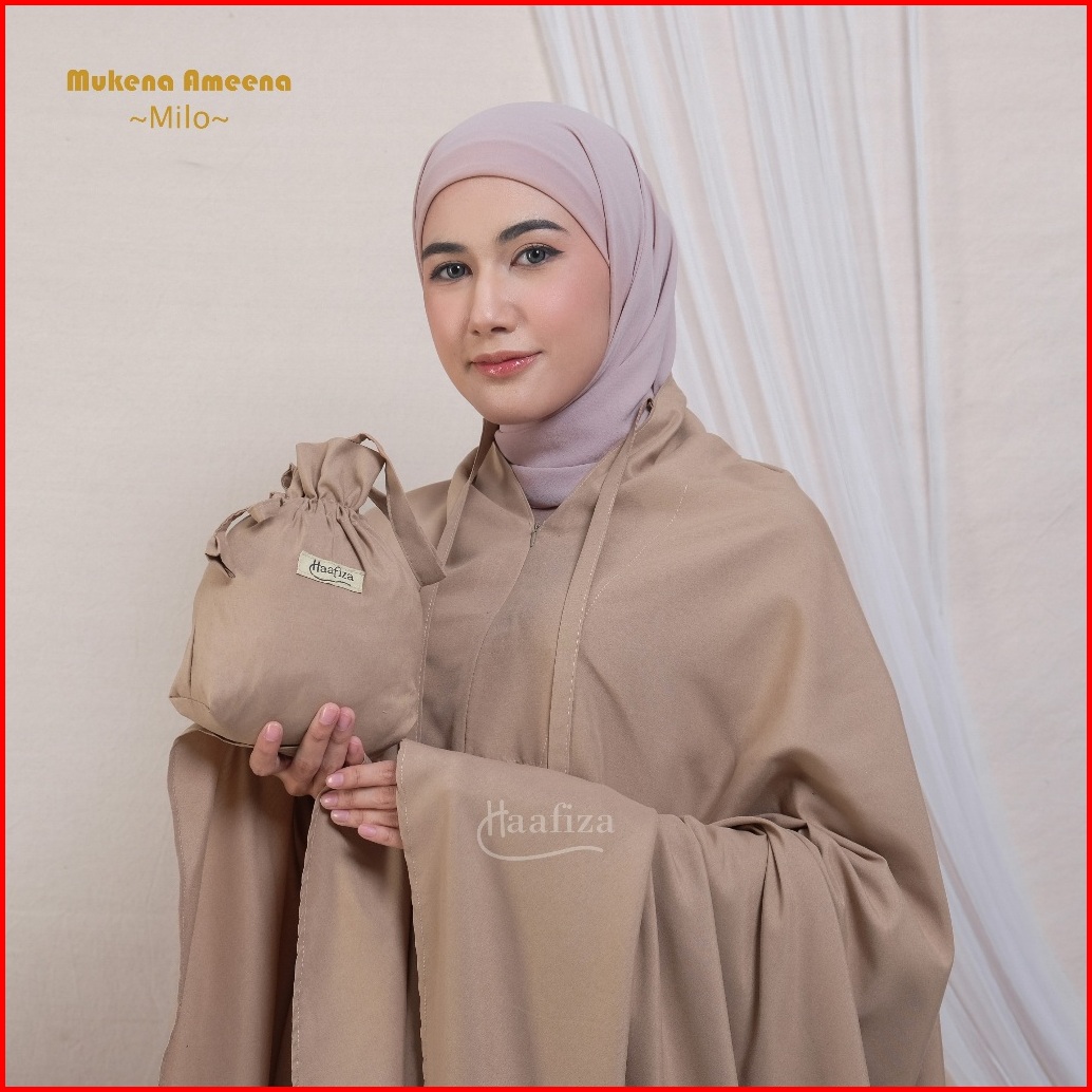 Haafiza Mukena Ameena Katun Mikro Travel Dewasa Polos Mini Pouch Series Model 2in1