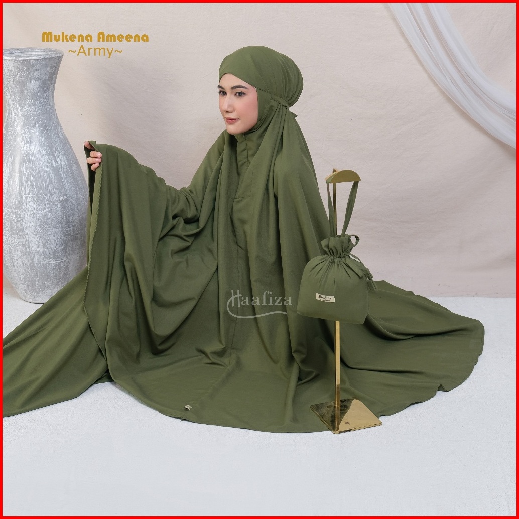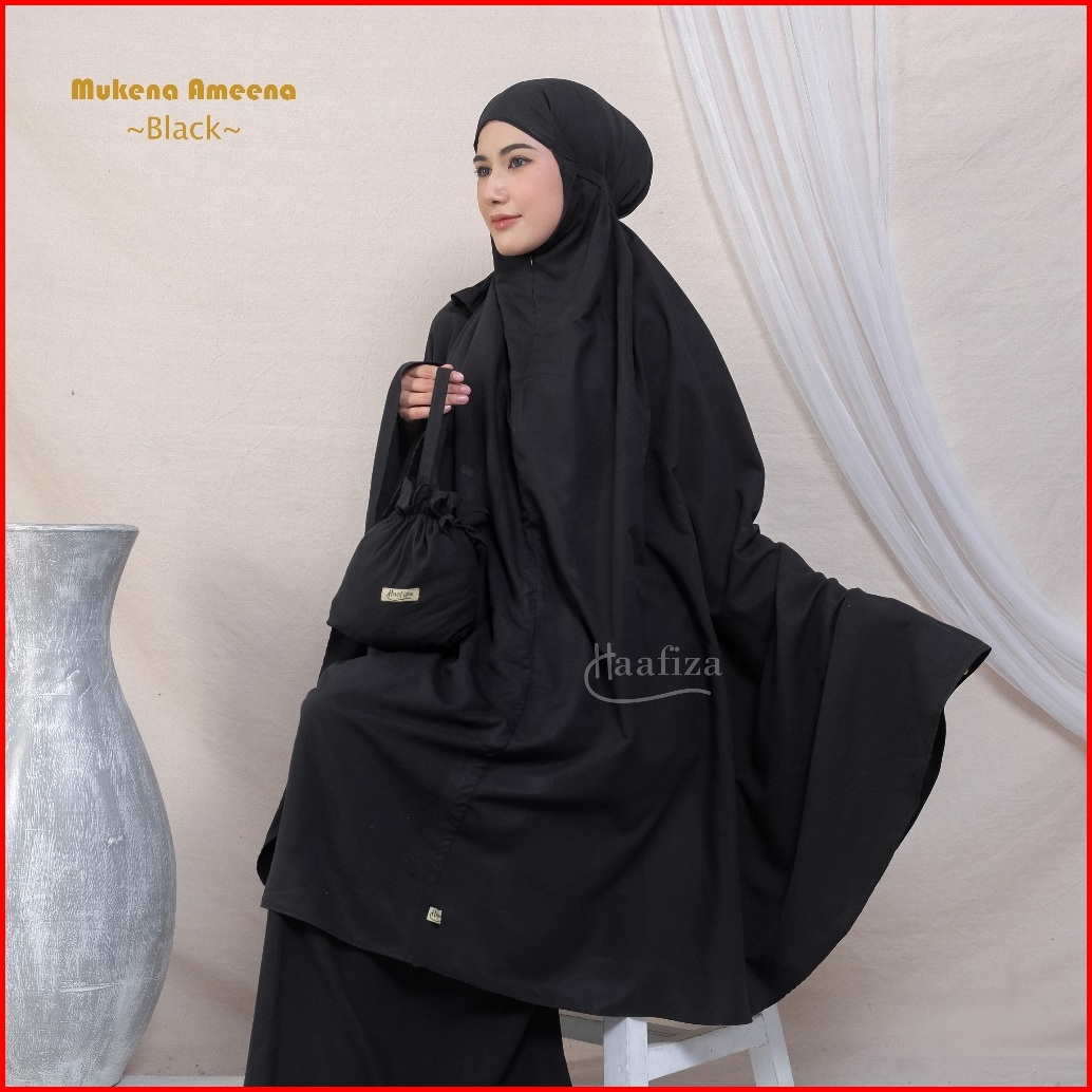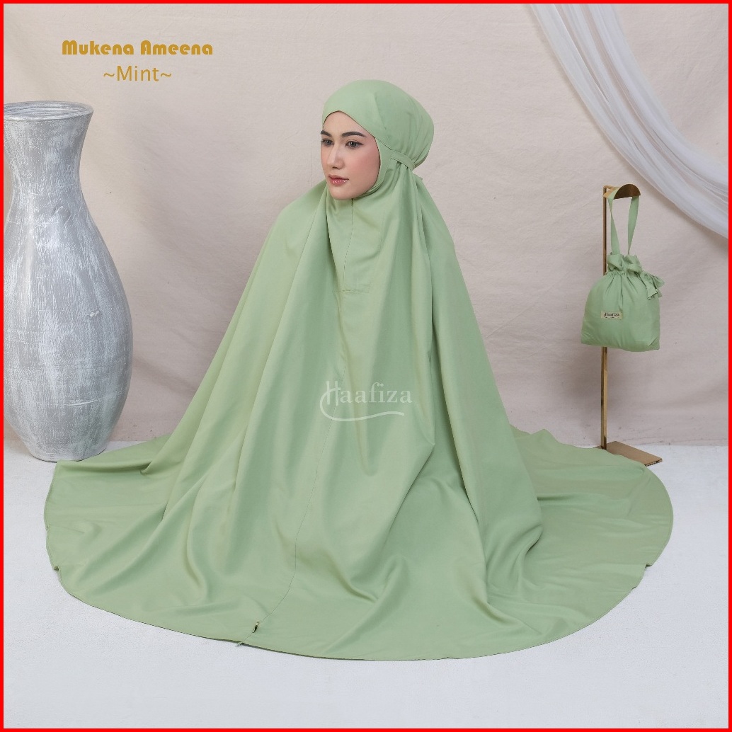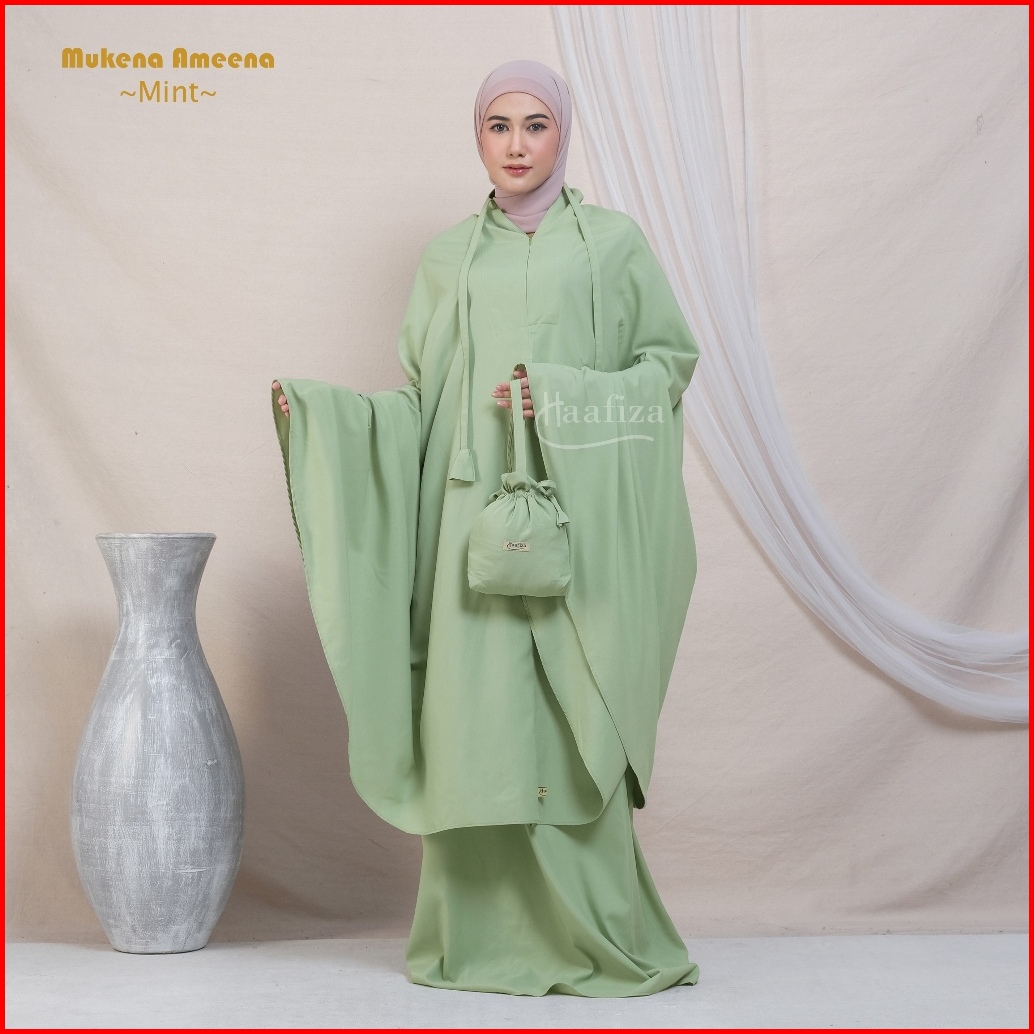 Haafiza Mukena Ameena Katun Mikro Travel Dewasa Polos Mini Pouch Series Model 2in1
