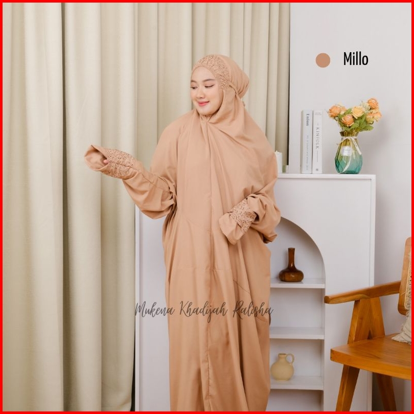 Ralisha Mukena Khodijah Terusan Dewasa Jumbo Katun Lembut Aplikasi Bordir Timbul