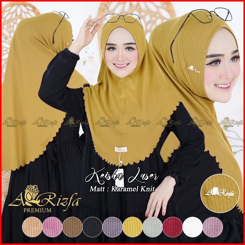 Bergo Knit Premium Arrizfa Hijab Bergo Polos Softpad Lasercut Knit Keisha