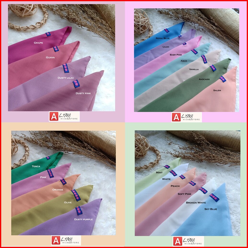Purple(Ungu), Merah Bata, Putih (white), Broken white, Black (Hitam), Navy, Maroon, Brown, Milo, Royal Blue, Pink, Emerald, Yellow, Mustard, Hijau Wardah, Salem, Dark Grey, Silver, WARNA LAIN, Coksu, Vanila, Caramel, Khaki, Skyblue, Cofee, Chocopink, Softpink, Dustypink, Fucshia