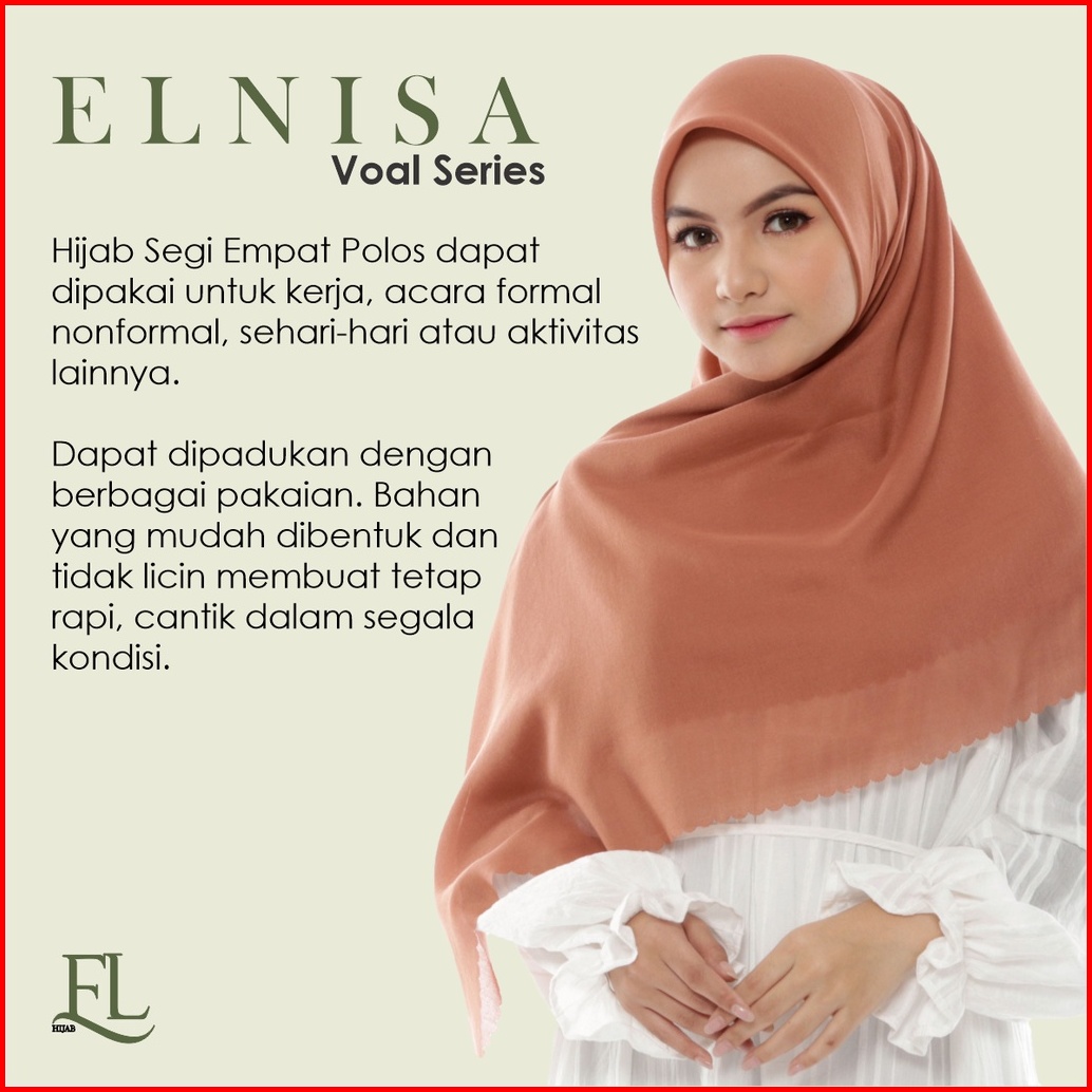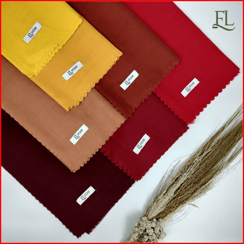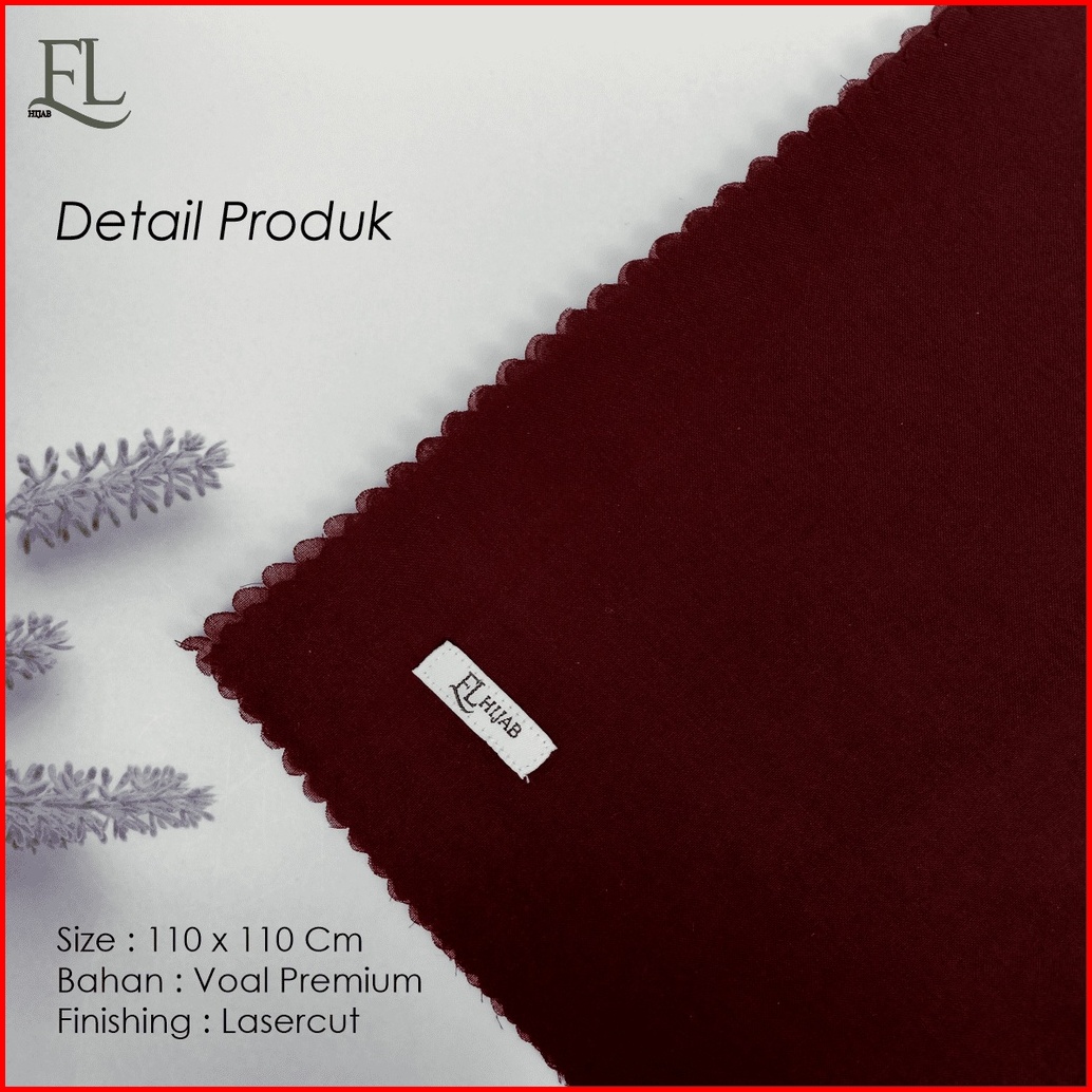 El Hijab Jilbab Segiempat Polos Voal Premium Lasercut Size 110x110 Pouch Premium Series Merah Kuning