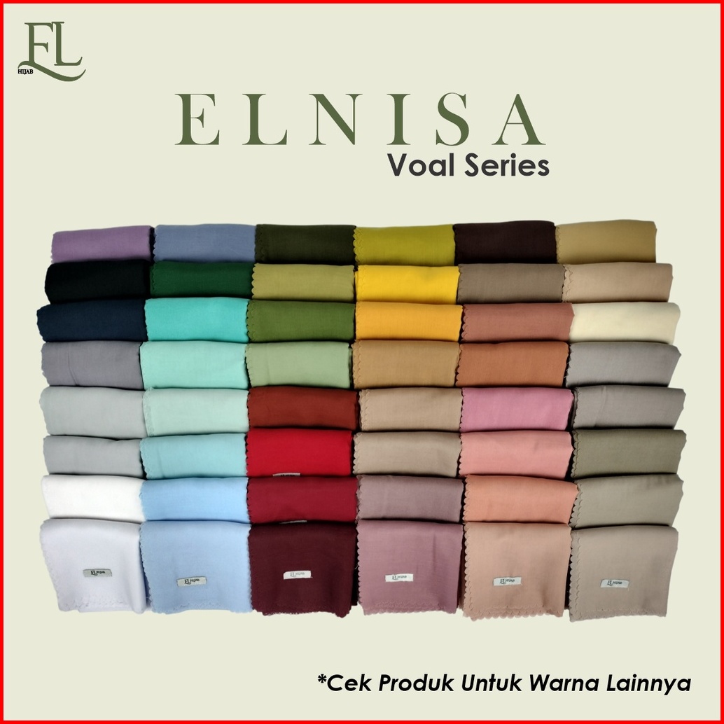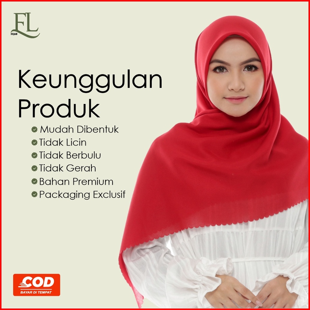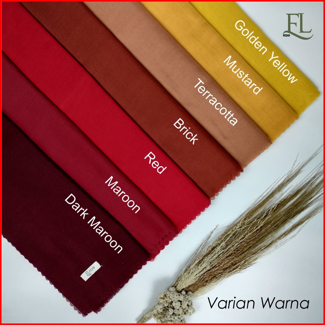 El Hijab Jilbab Segiempat Polos Voal Premium Lasercut Size 110x110 Pouch Premium Series Merah Kuning