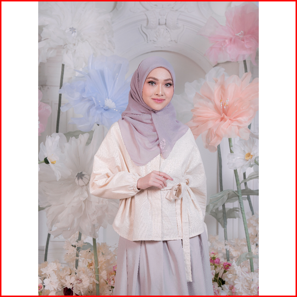Elarose - Lady Paris Japan Square - Paris Japan Original - Hijab Segiempat - Eyelash Stitch Detail - Embroidery