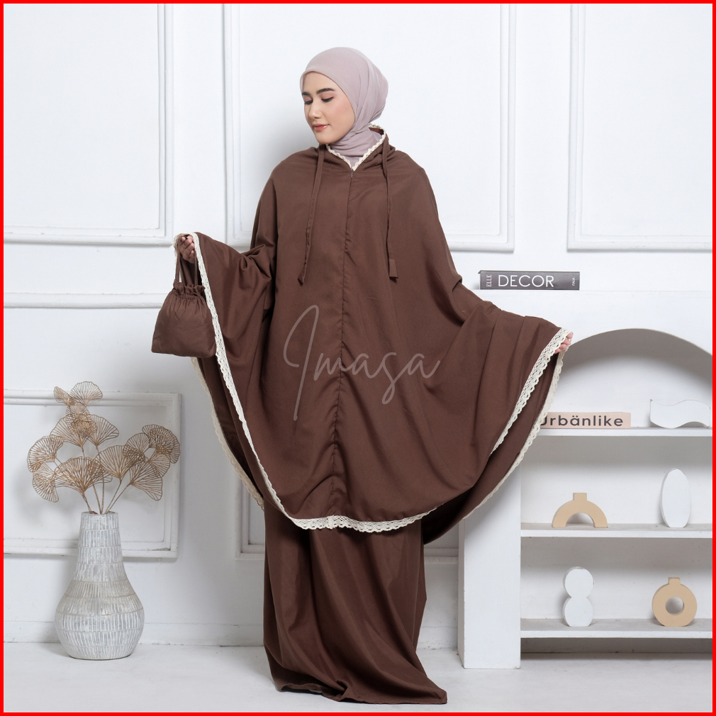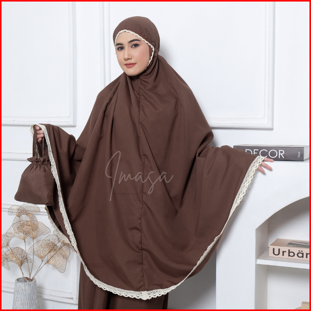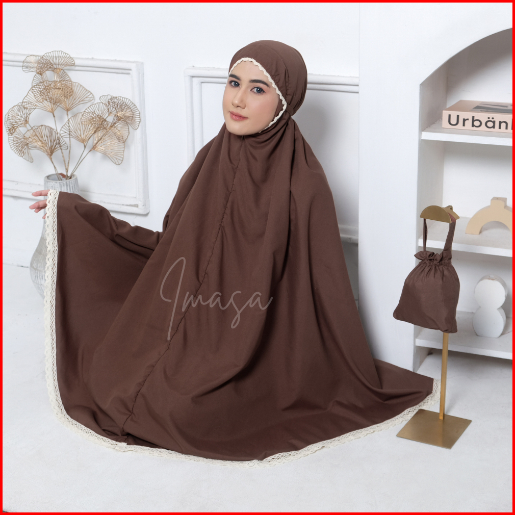 Imasa - Mukena Dewasa Renda Katun Mikro Alisa 2in1 Polos Travelling