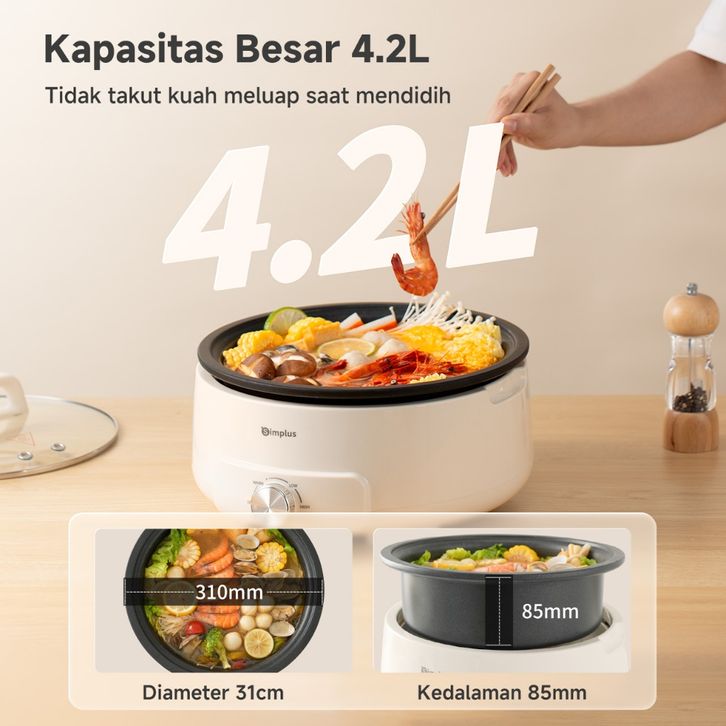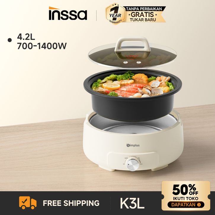 INSSA X Simplus Panci Listrik Multifungsi 4.2L Anti Lengket ,Mudah Dibongkar untuk Pembersihan 700w