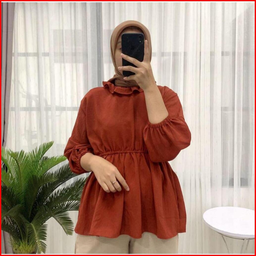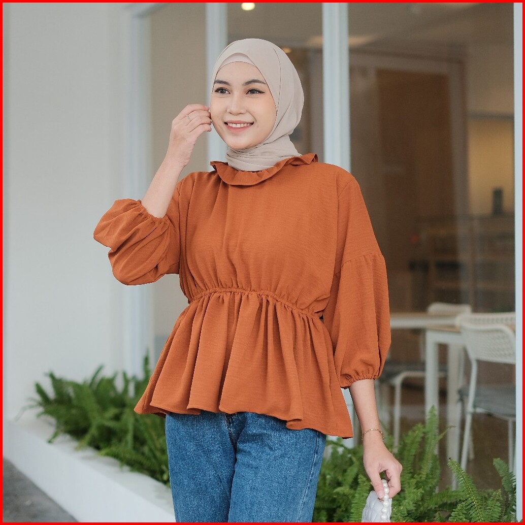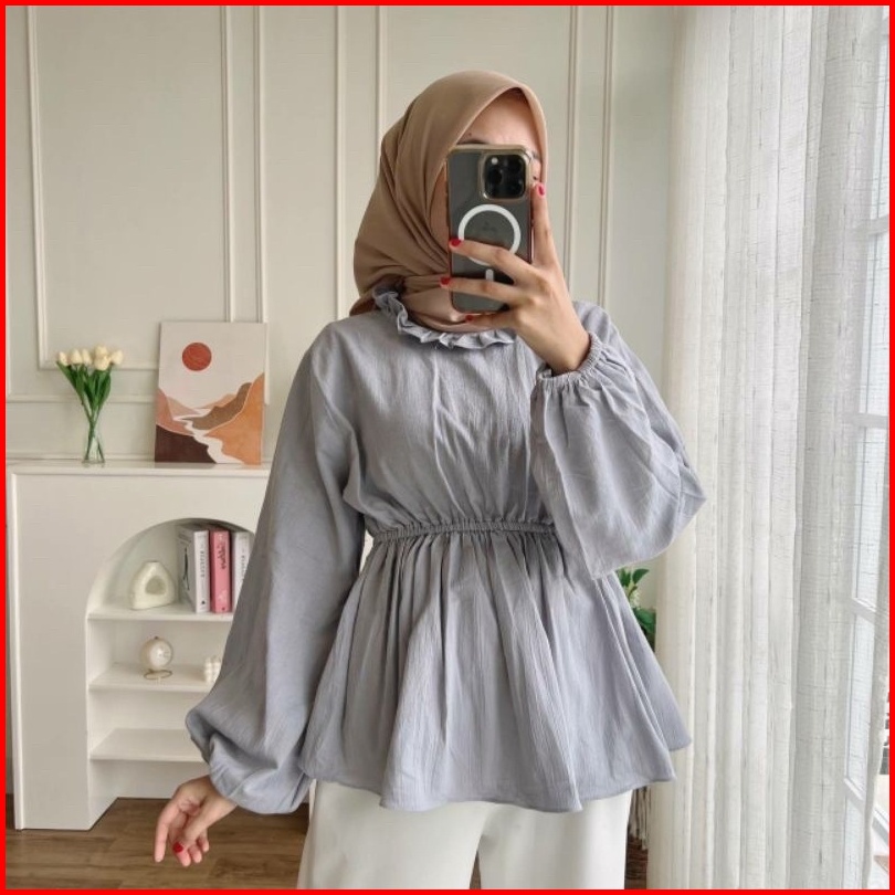 Grosir Solo Sita Blouse Kerut Pinggang Olla Peplum Blouse Kerut Polos Atasan Crinkle Airflow