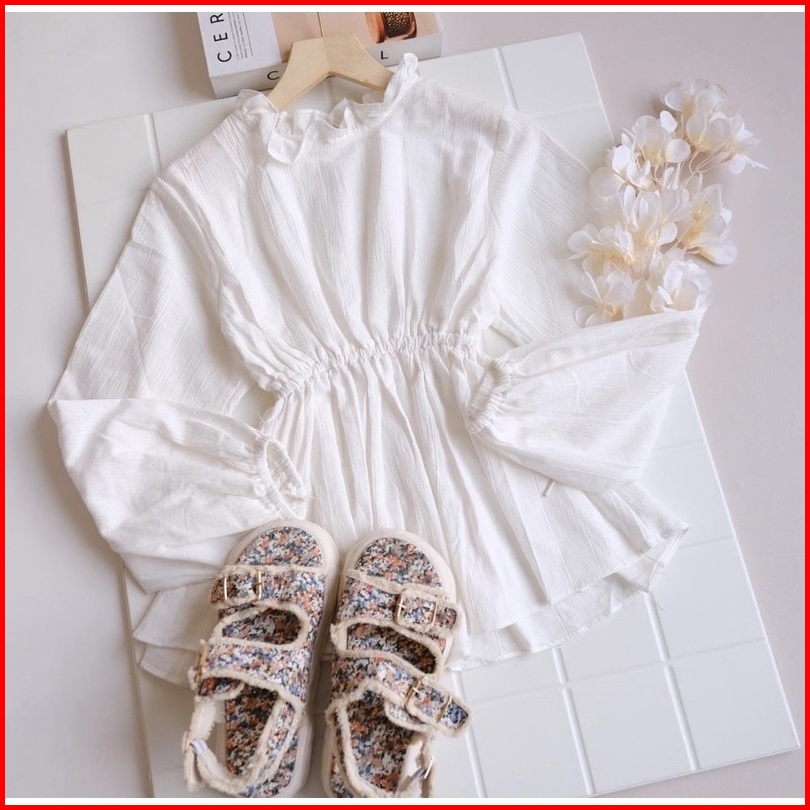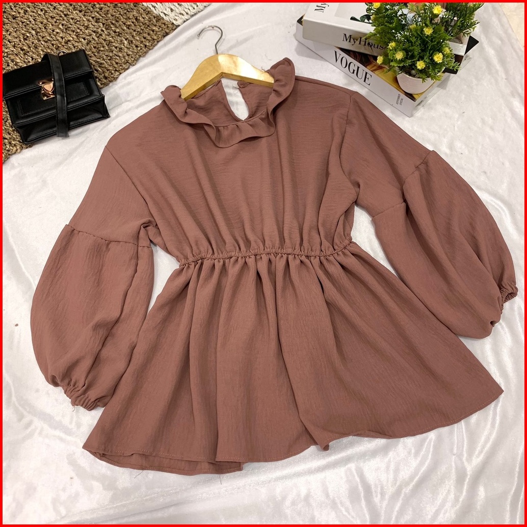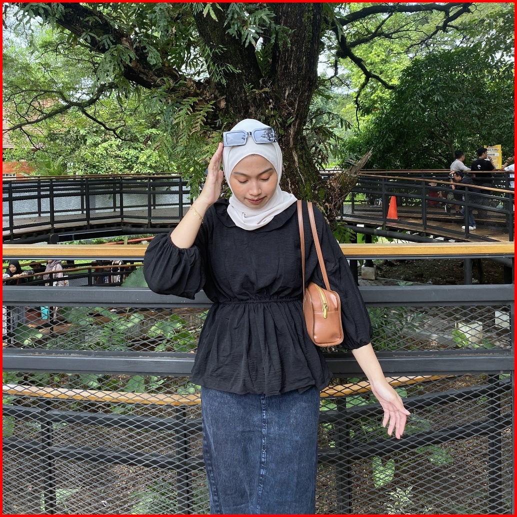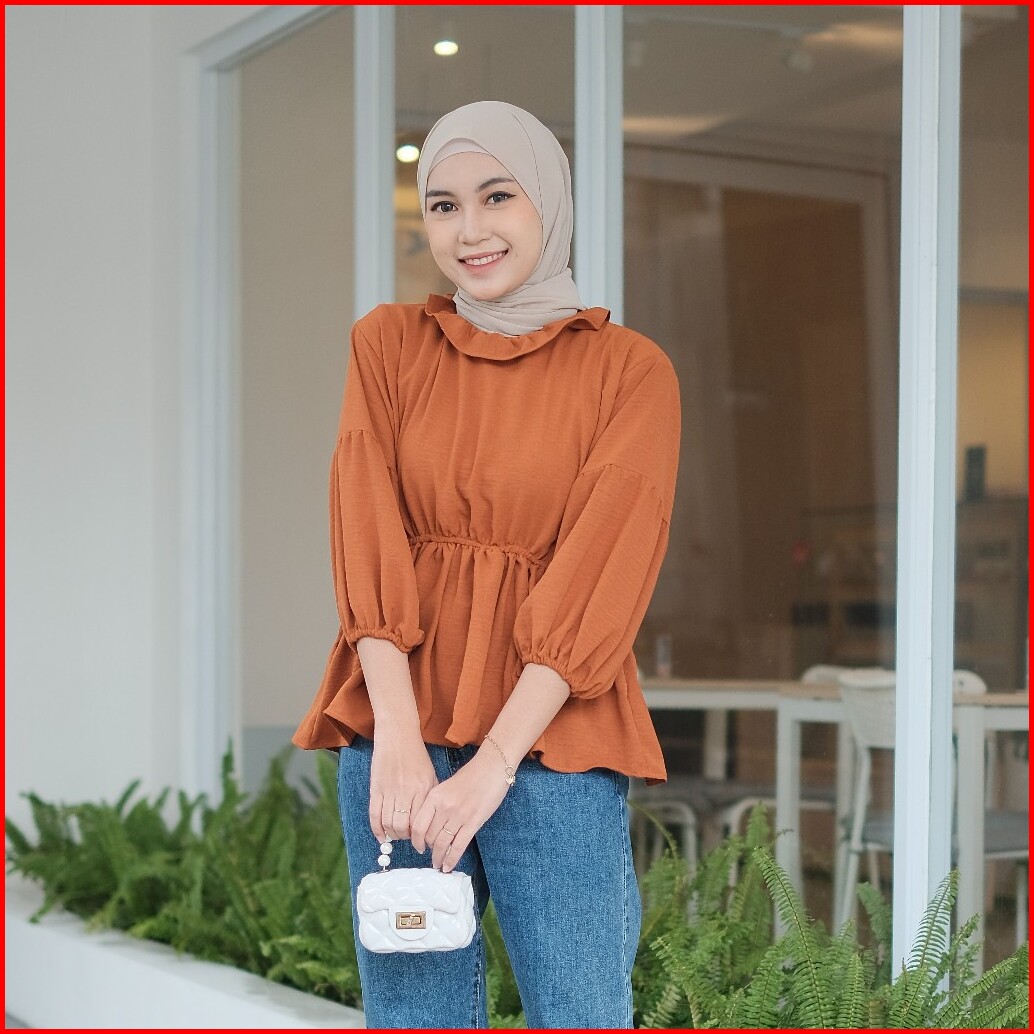 Grosir Solo Sita Blouse Kerut Pinggang Olla Peplum Blouse Kerut Polos Atasan Crinkle Airflow