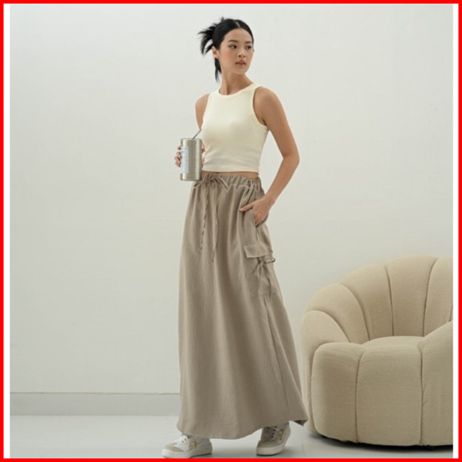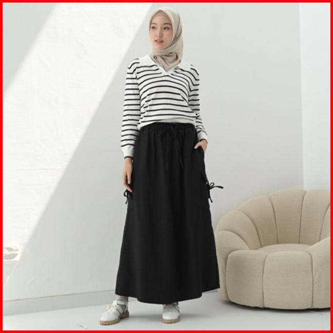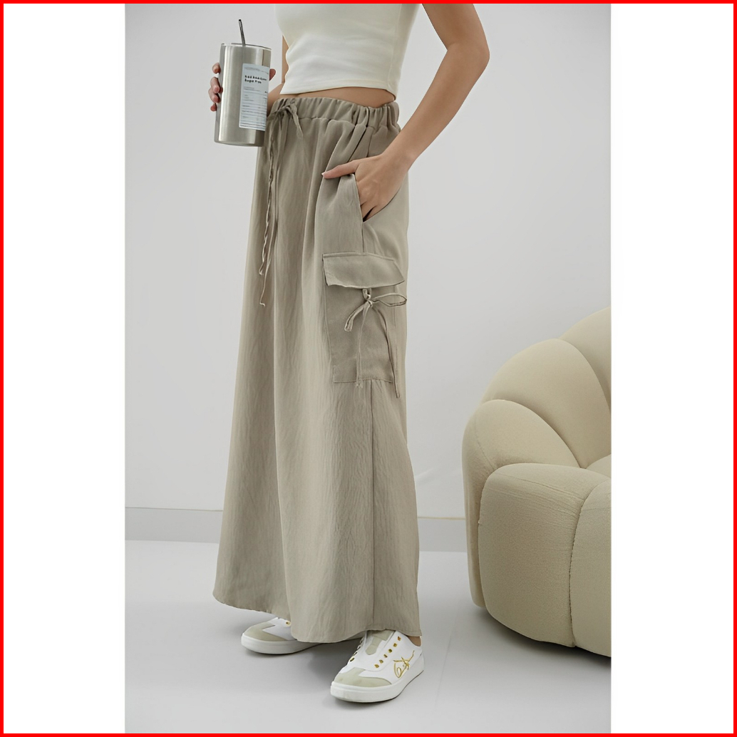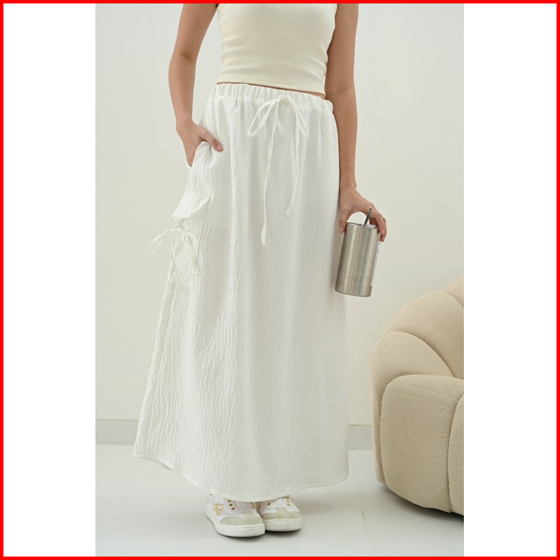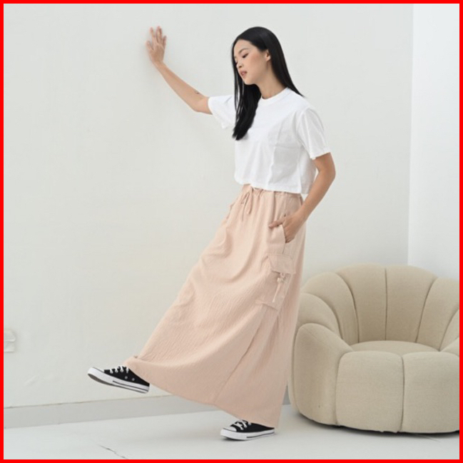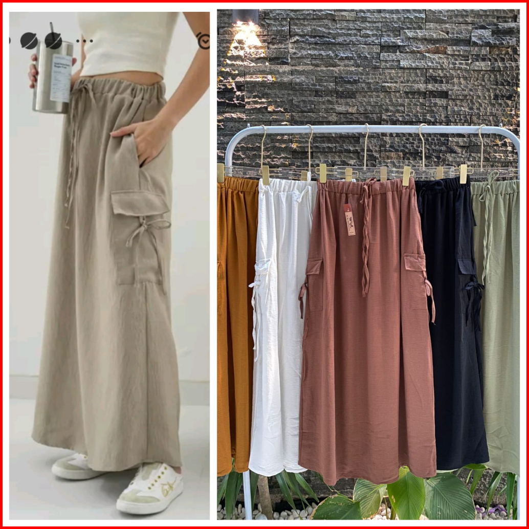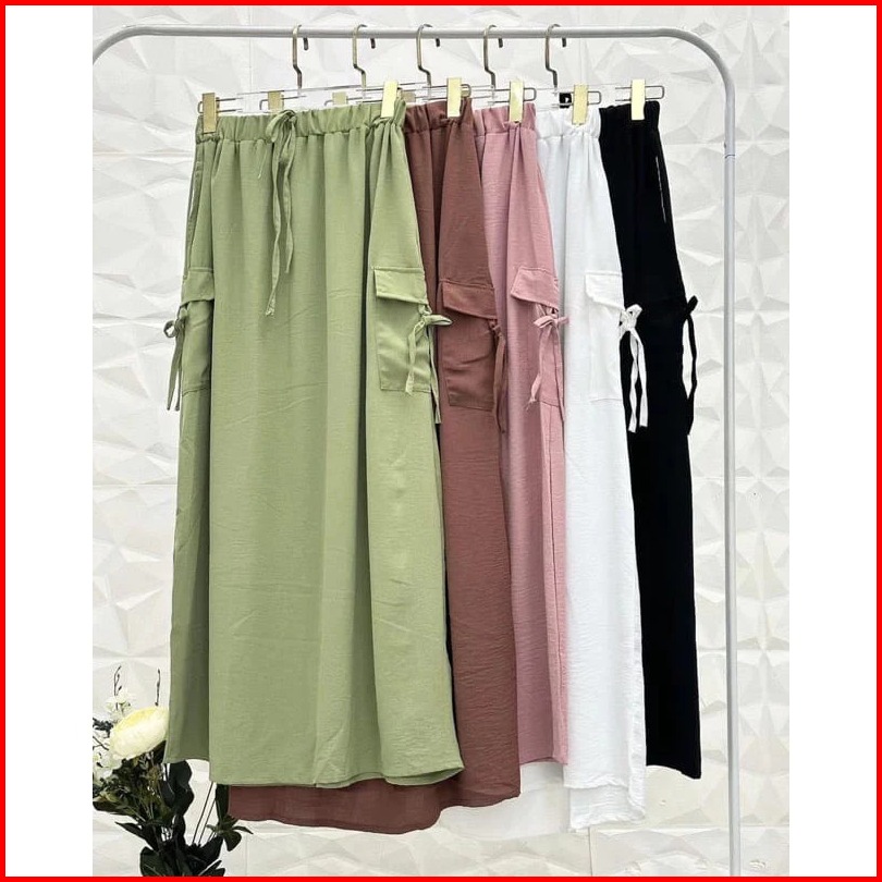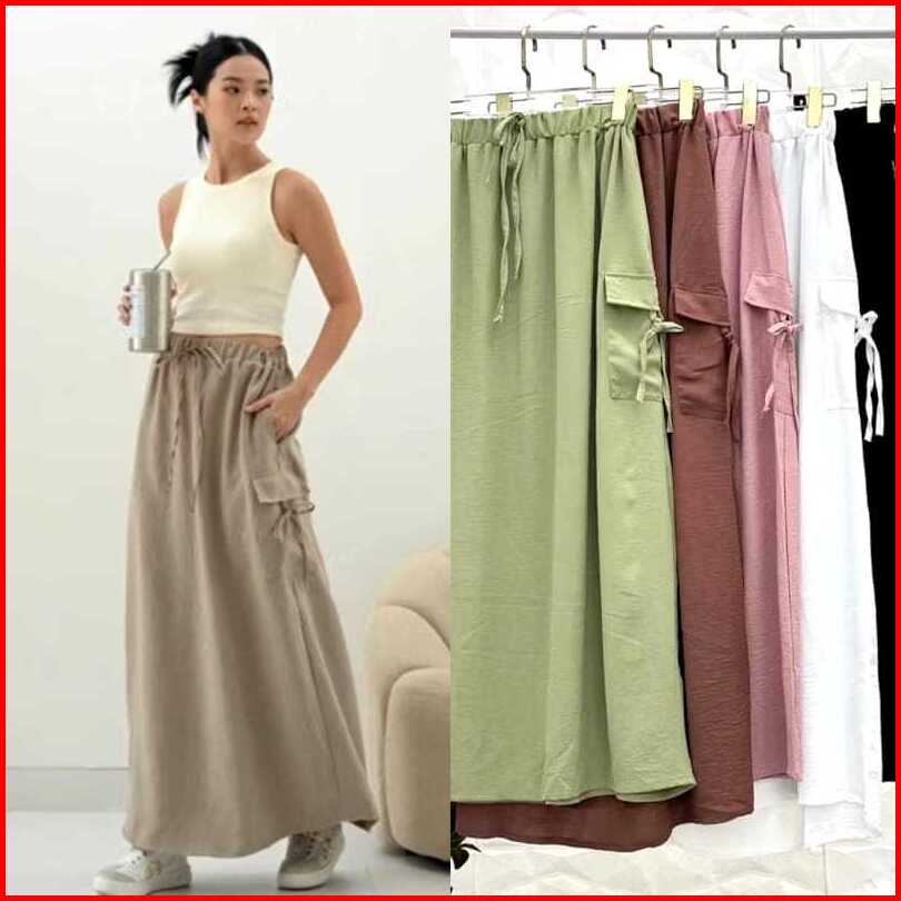 Ranika Rok Cargo Wanita Saku Pita Crincle Airflow