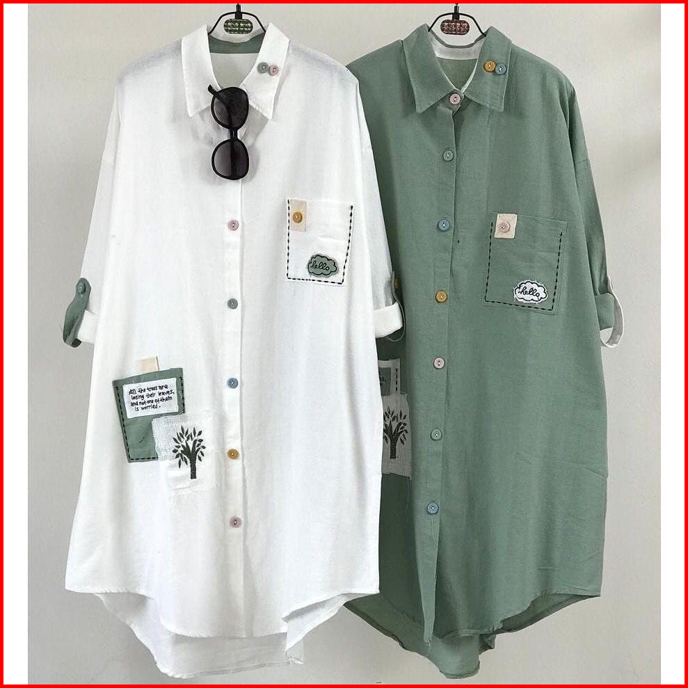 Vallina Outfit - Miya Long Tunik Patch Pocket Atasan Wanita Muslim Modern Kekinian Linen Rami Crinkle Premium M - Xl