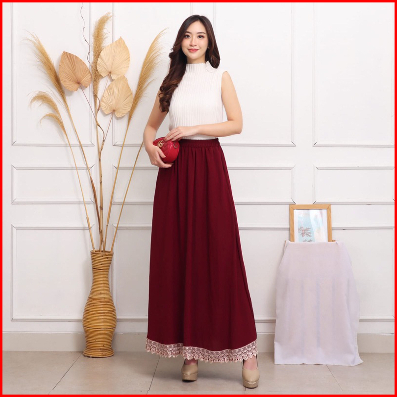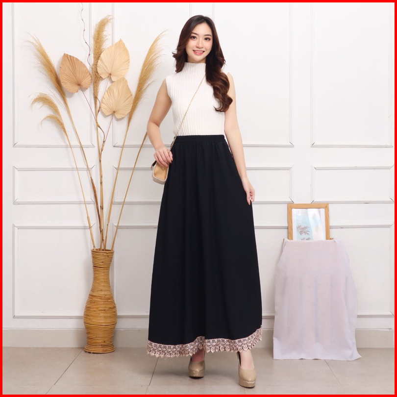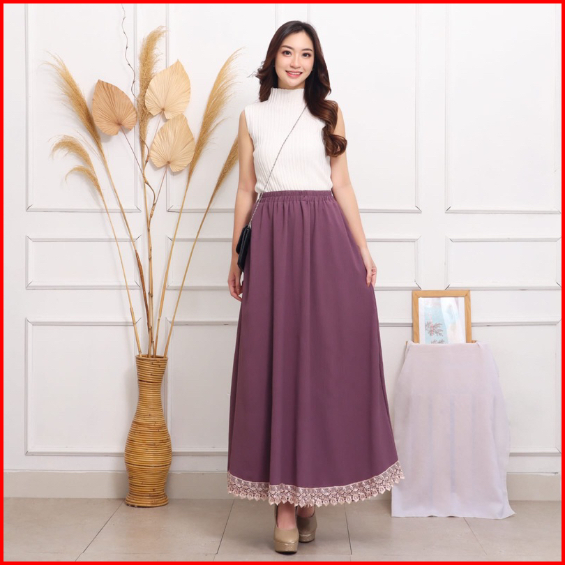 Rok Panjang Renda Crinkle Airflow Mayung Fit To Jumbo Xxl Polos Grosir Mewah