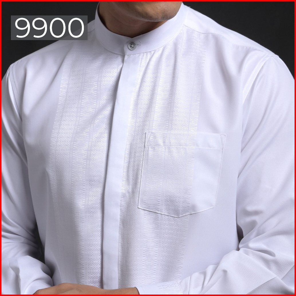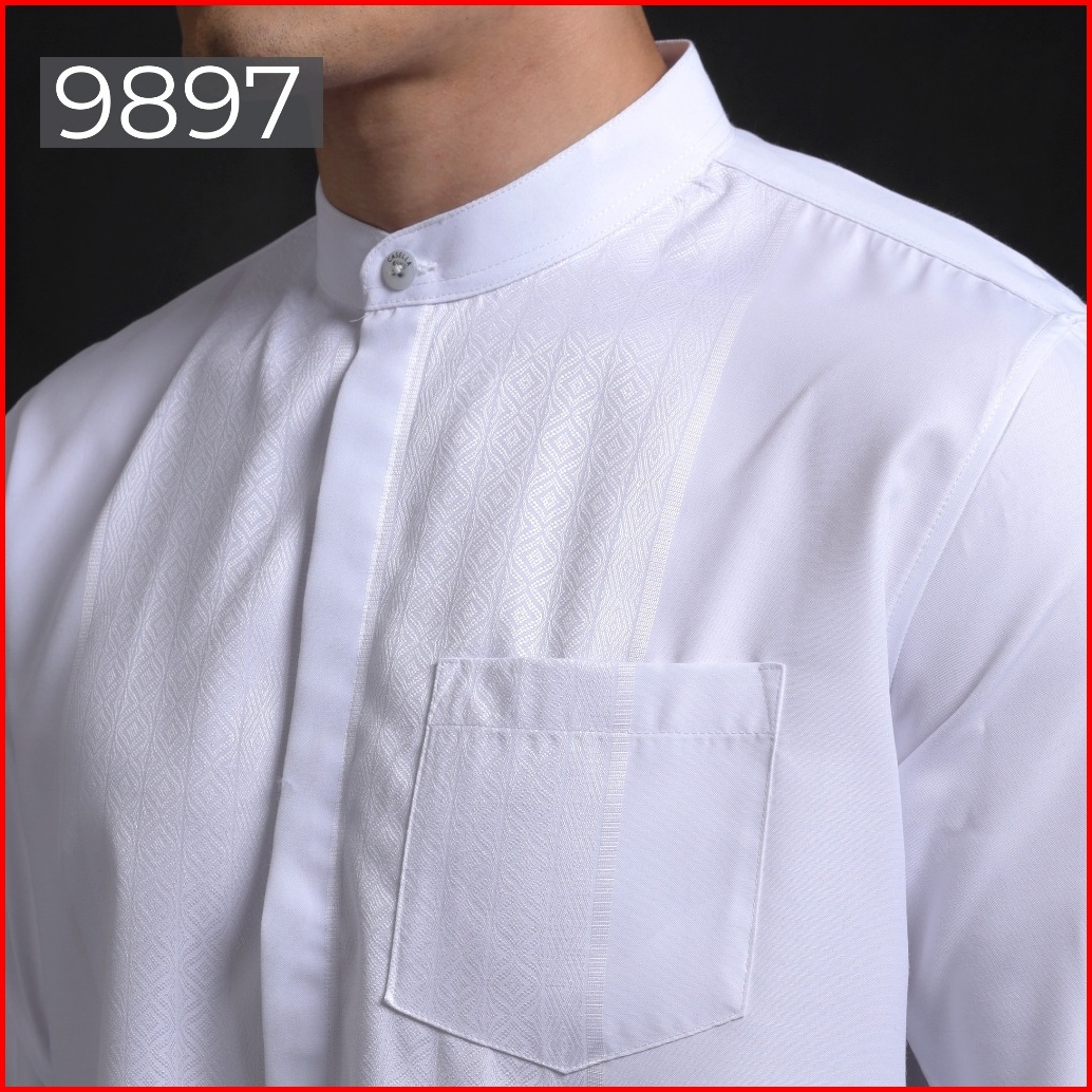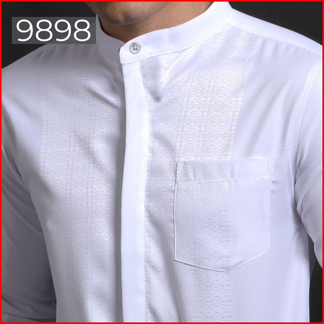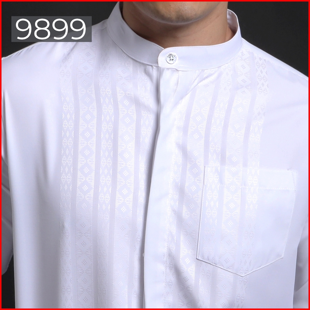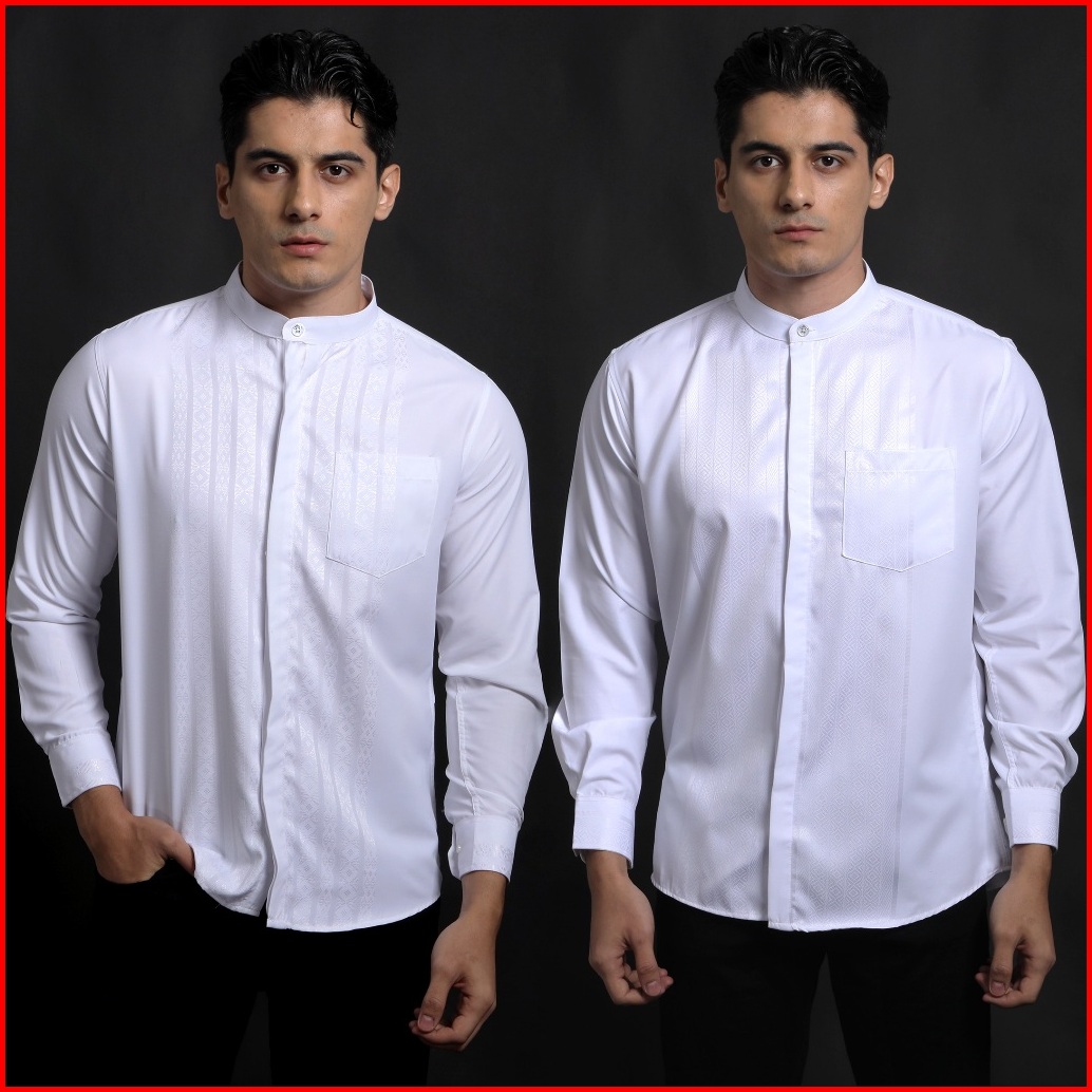 Casella Baju Koko Pria Lengan Panjang Premium Vertical White Koko Elegant Musa Lengan Panjang