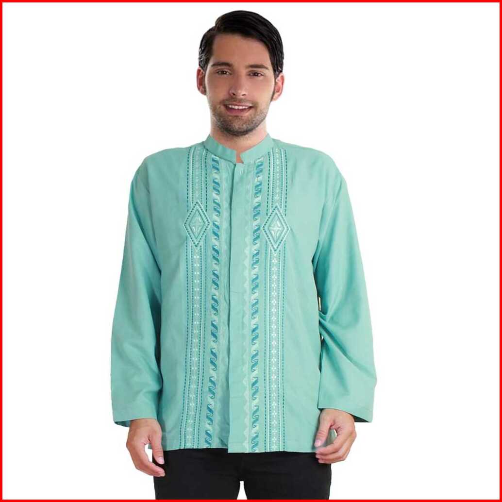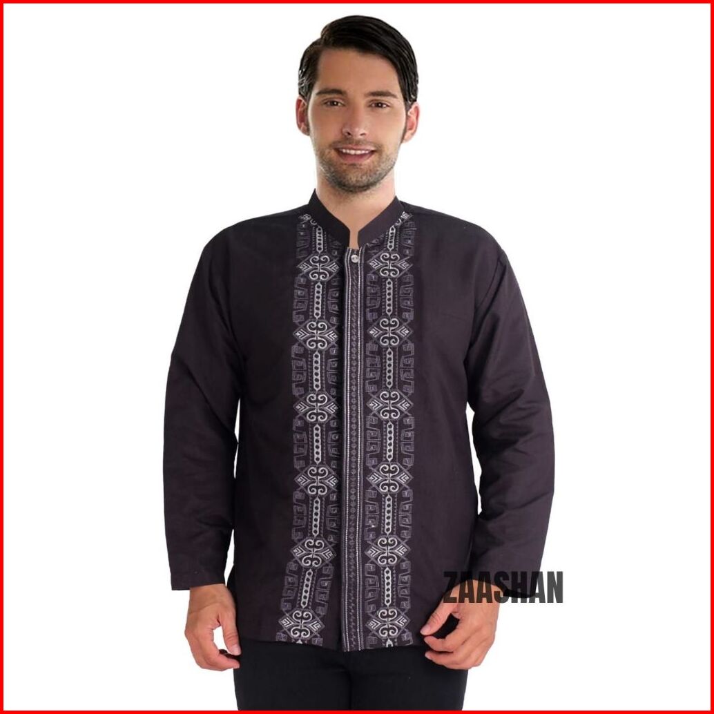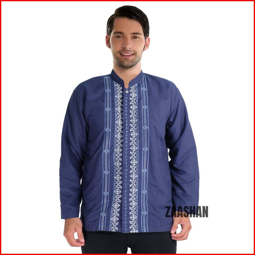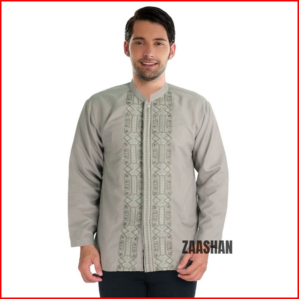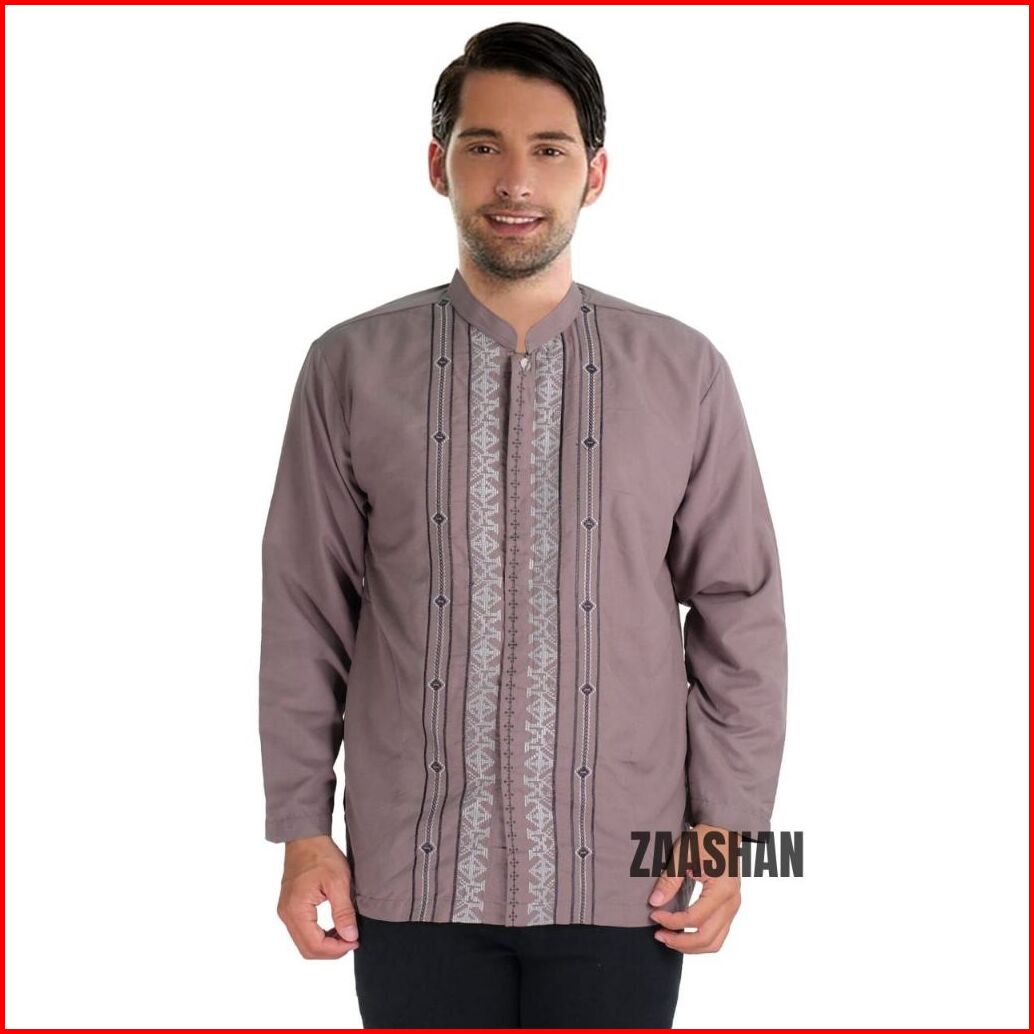 Zaashan Baju Koko Baju Muslim Lengan Panjang Motif Bordir Bahan Katun