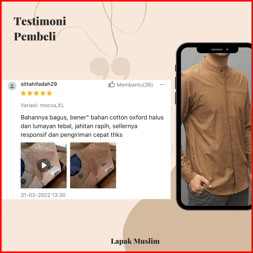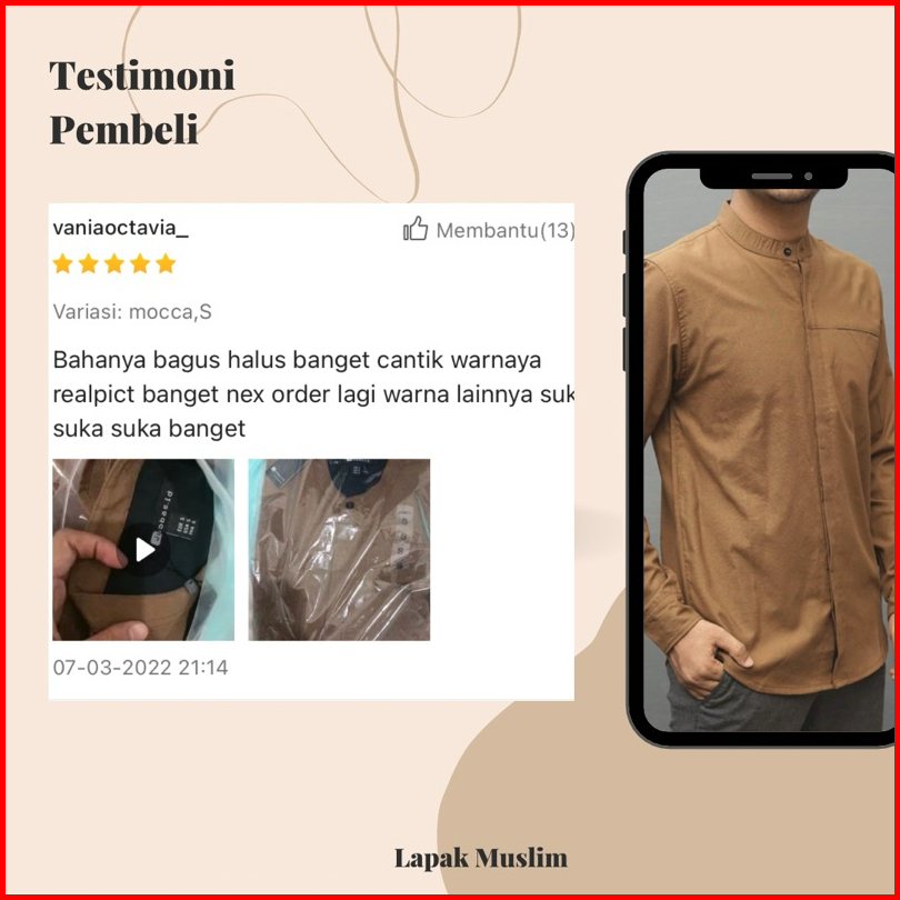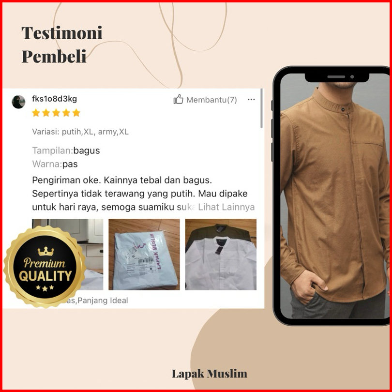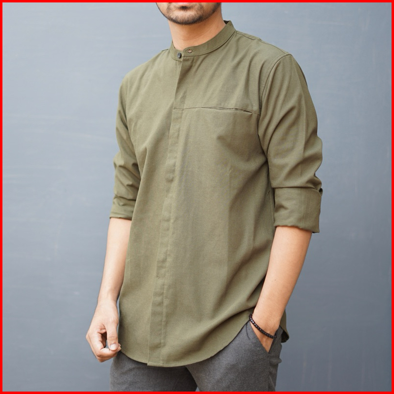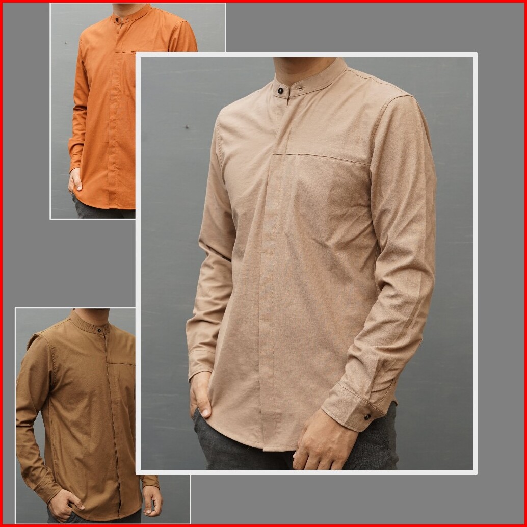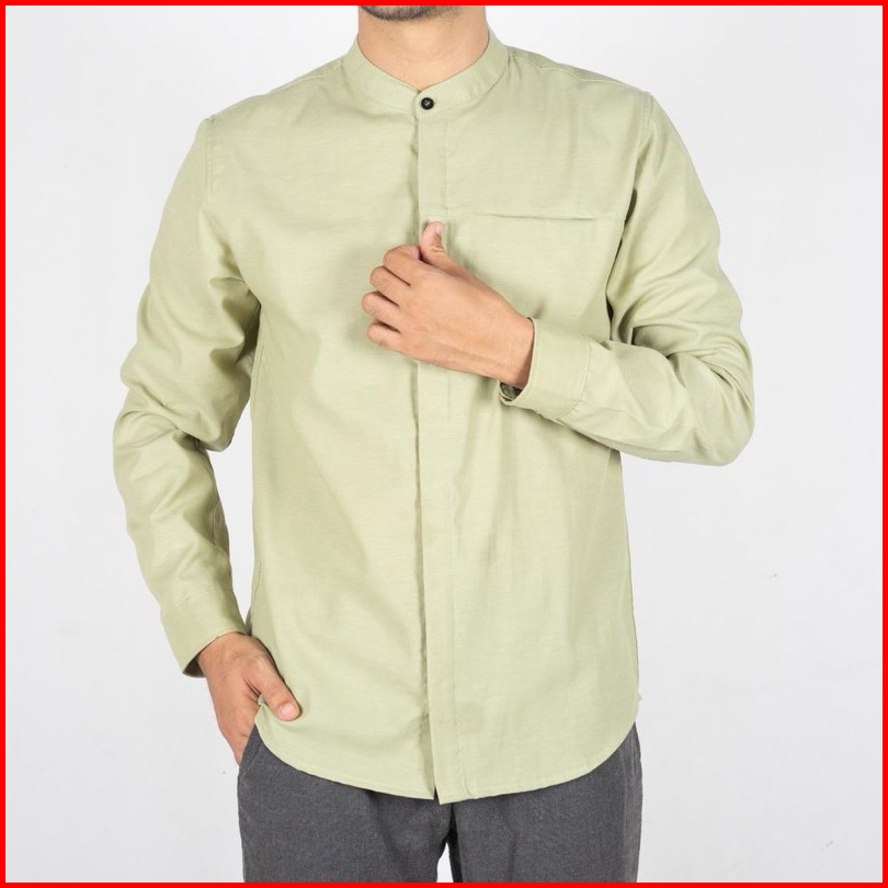 Kemko Pria Slimfit Full Kancing Baju Kemeja Koko Kurta Dewasa Polos Lengan Panjang