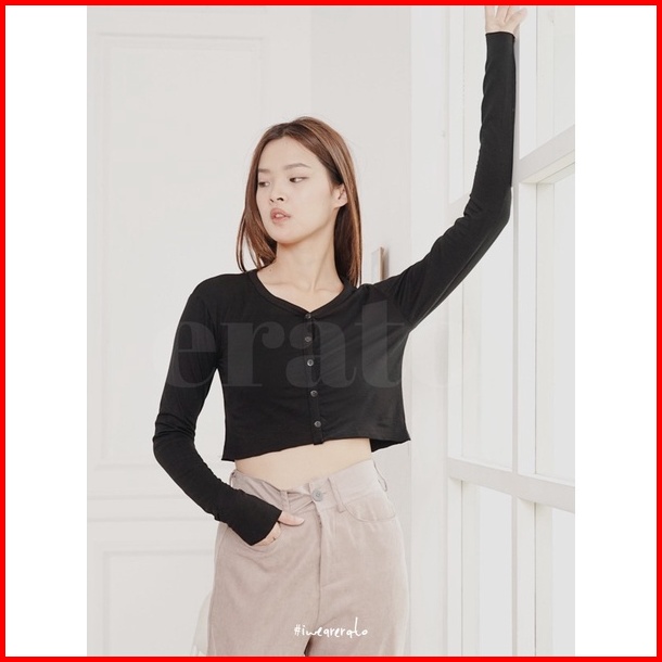 Erato Last Stock - Delila Long Sleeve Crop Top Atasan Lengan Panjang Wanita