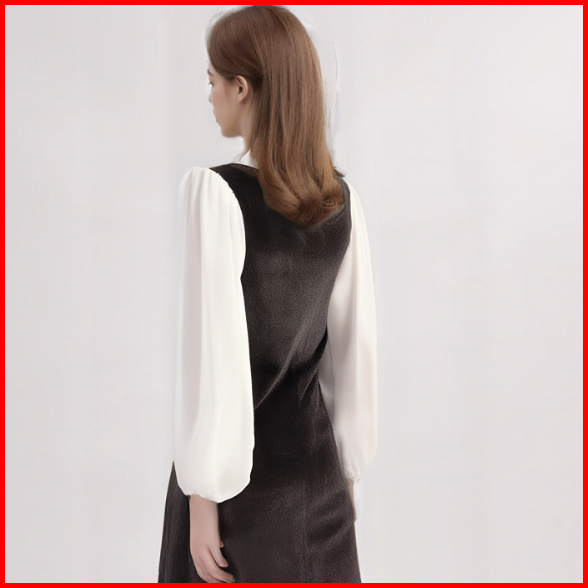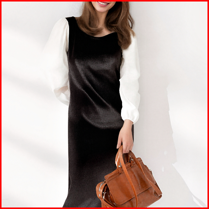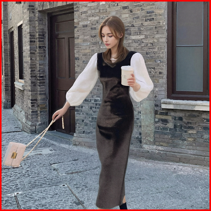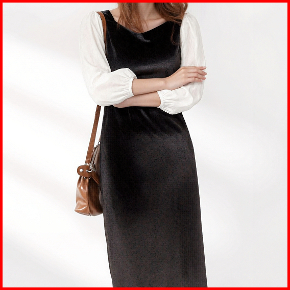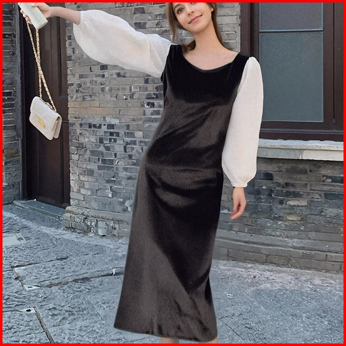 Long Puff Tulle Sleeve Velvet Midi Dress 1173 S-xl