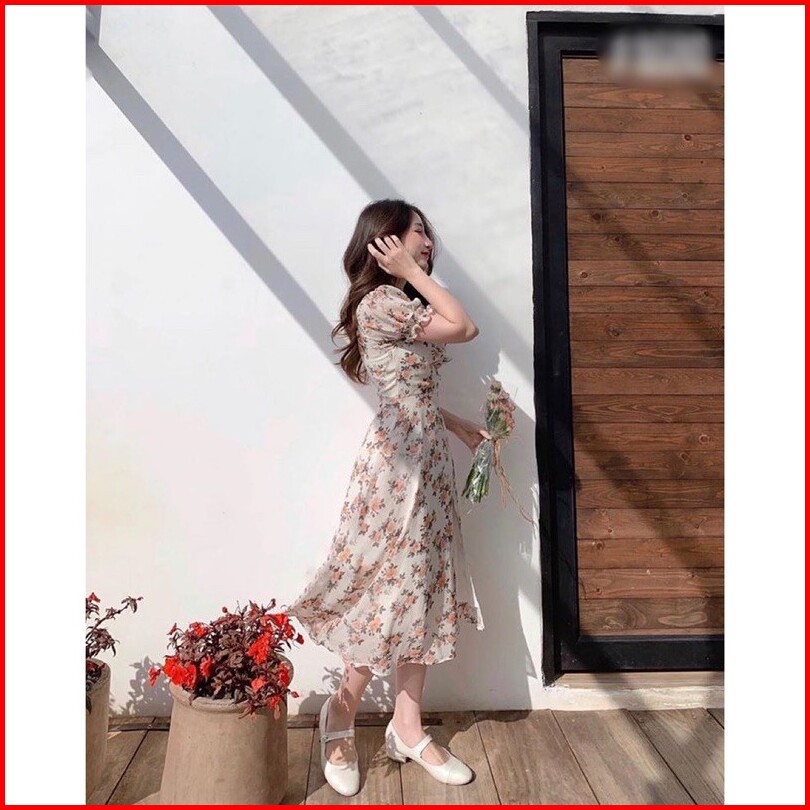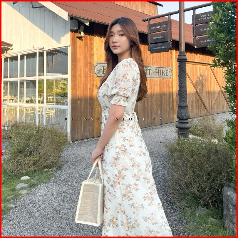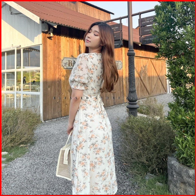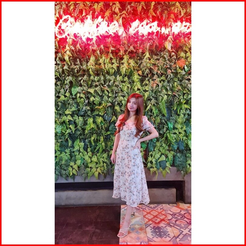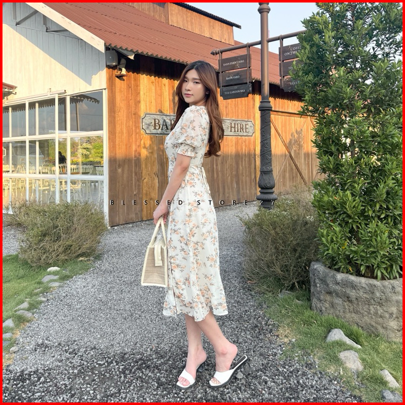 D0419 Destiny Korean Floral Vintage Midi Dress Pantai Musim Panas Summer Gaya Retro