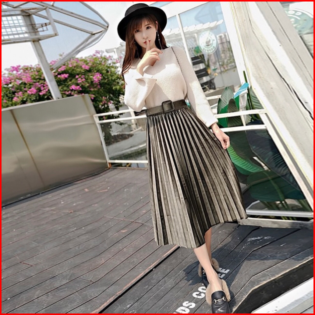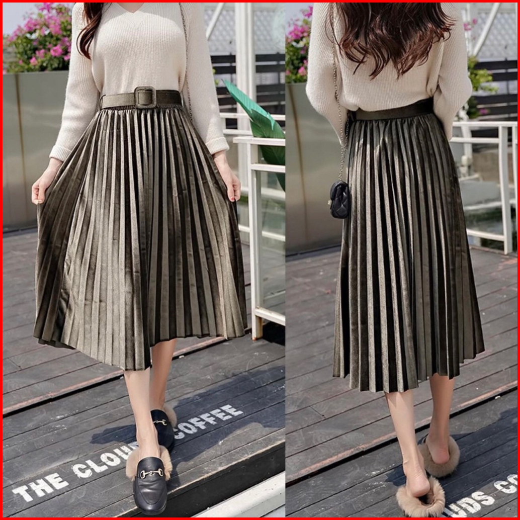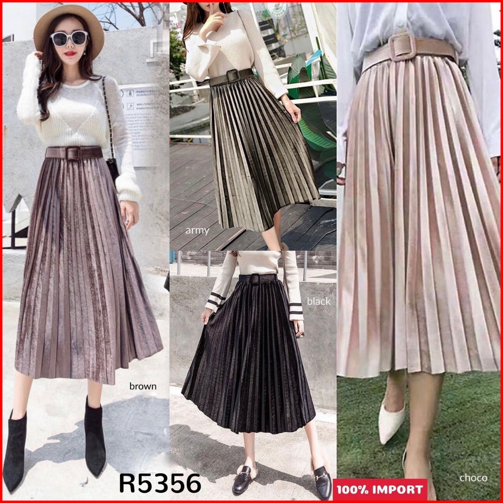Fg Joy Velvet Midi Skirt W Belt R5356 Tr