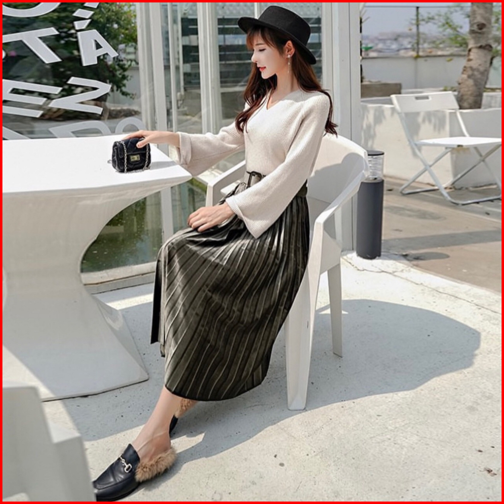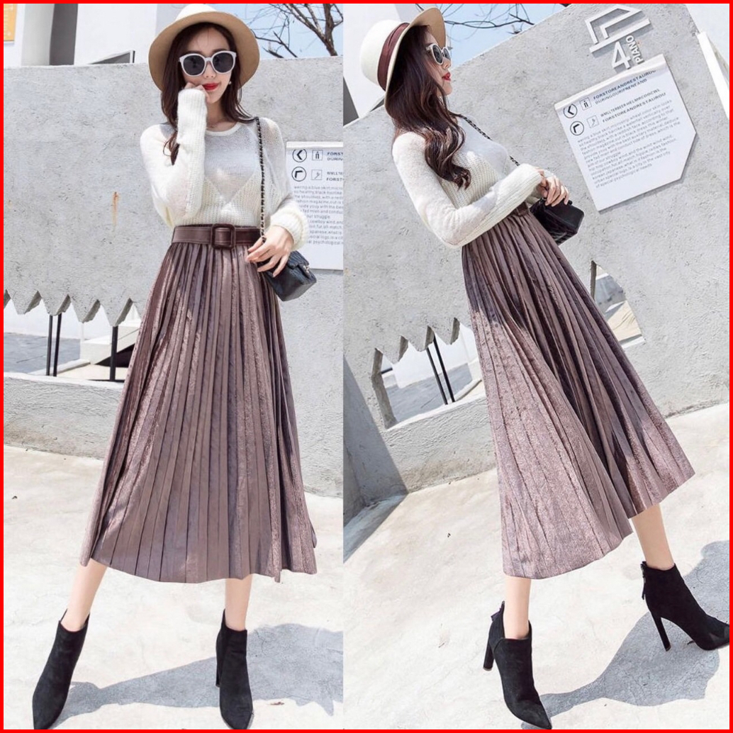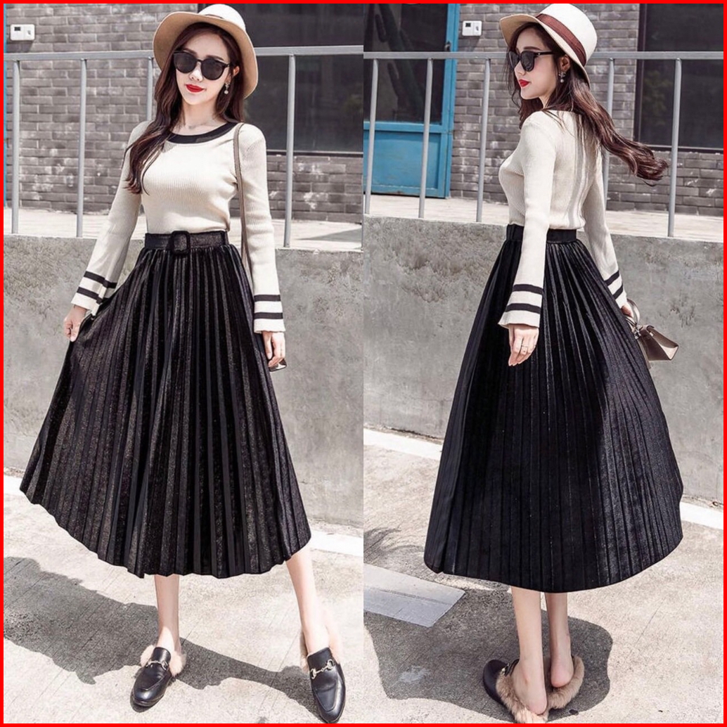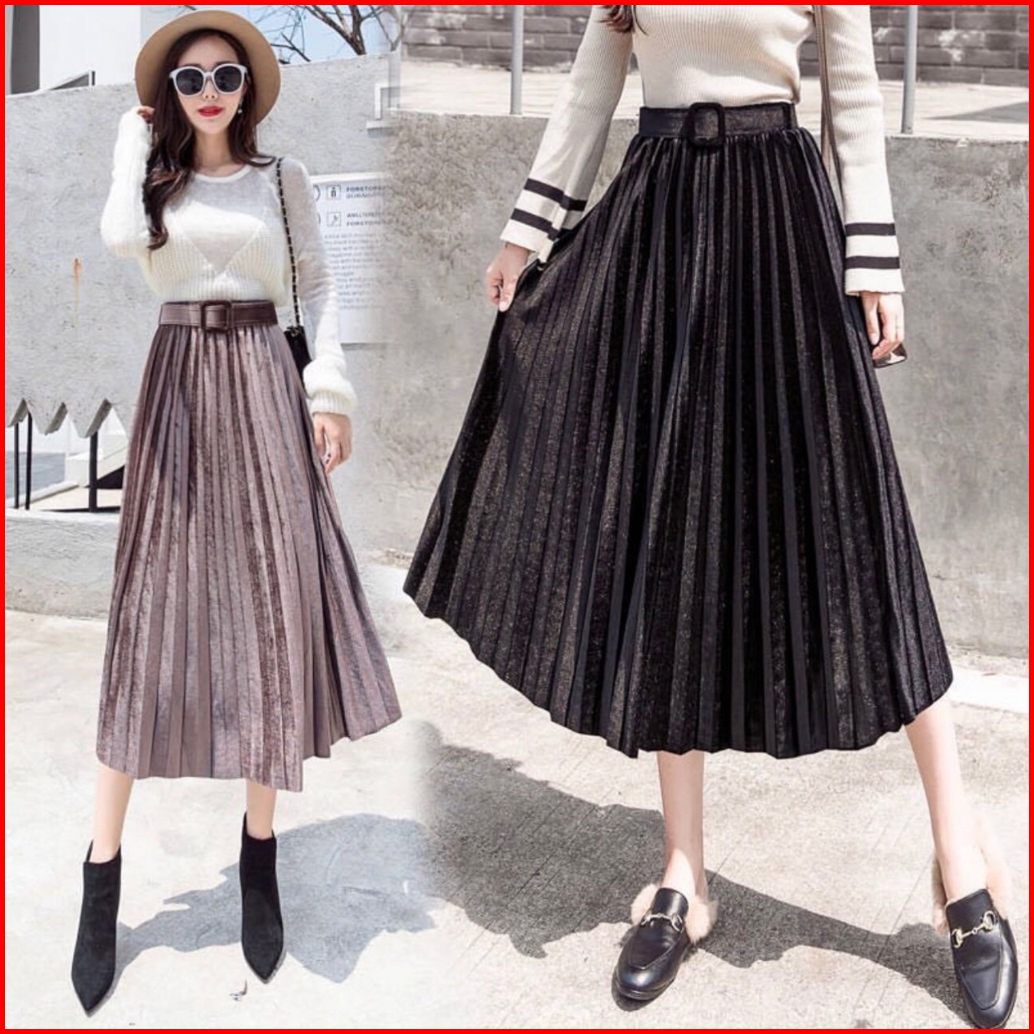 Fg Joy Velvet Midi Skirt W Belt R5356 Tr