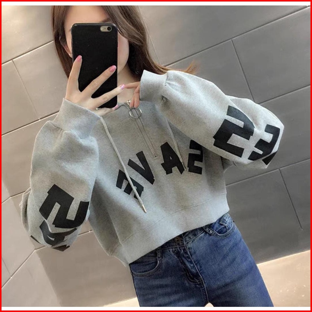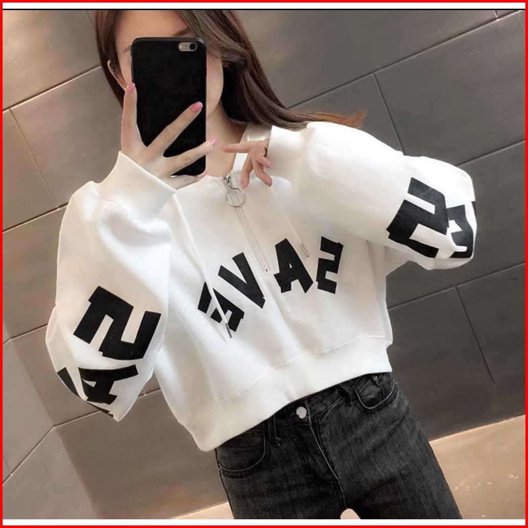 Save Crop Hodie Zipper Ring Sweater Croope Top Wanita