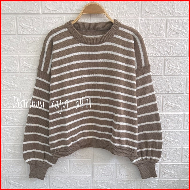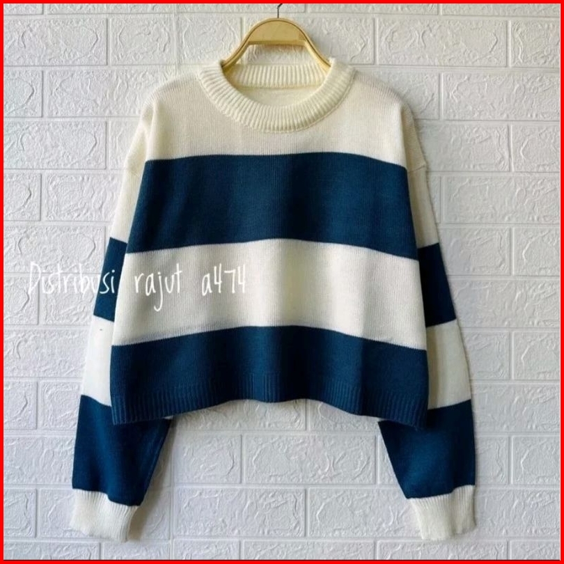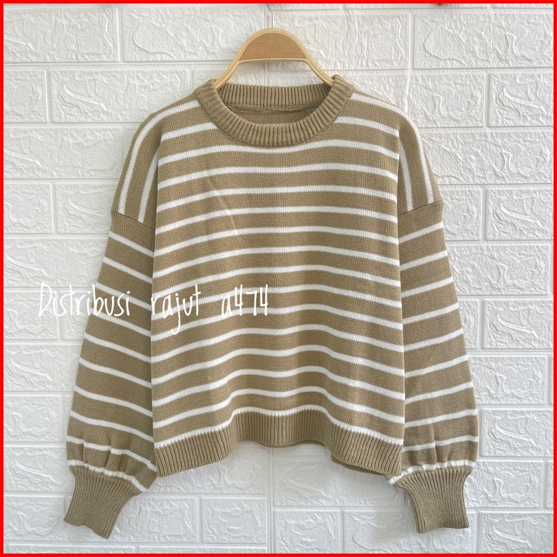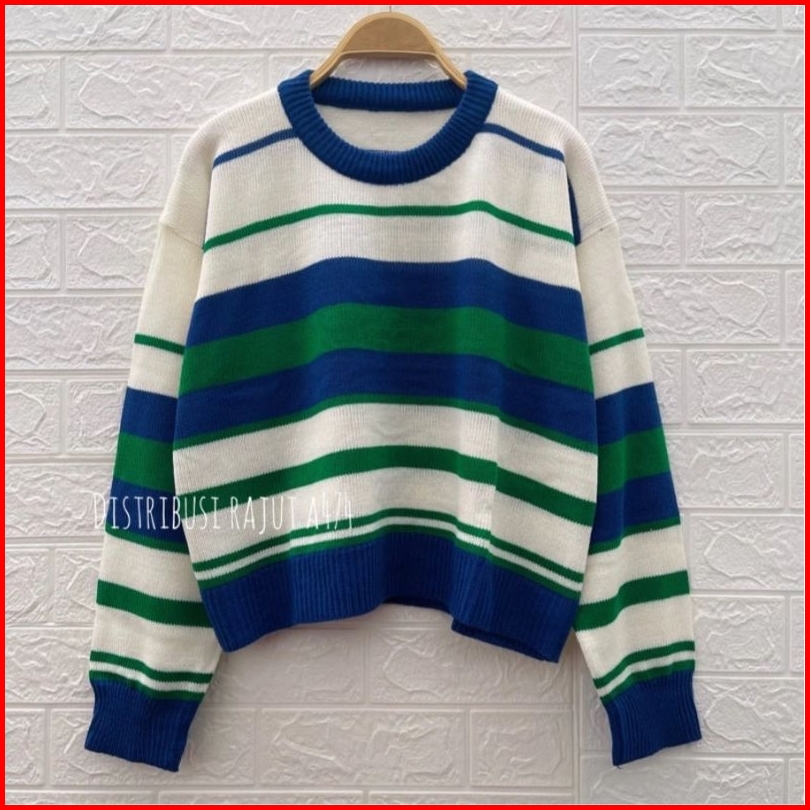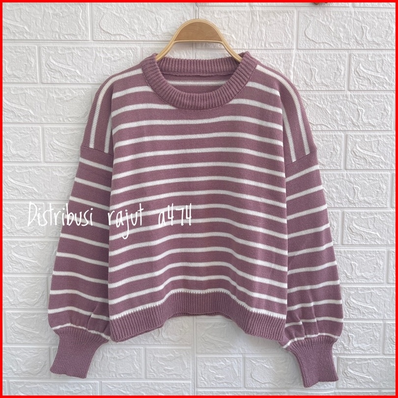 Titi Strip Sweater Rajut Kerah Bulat Premium